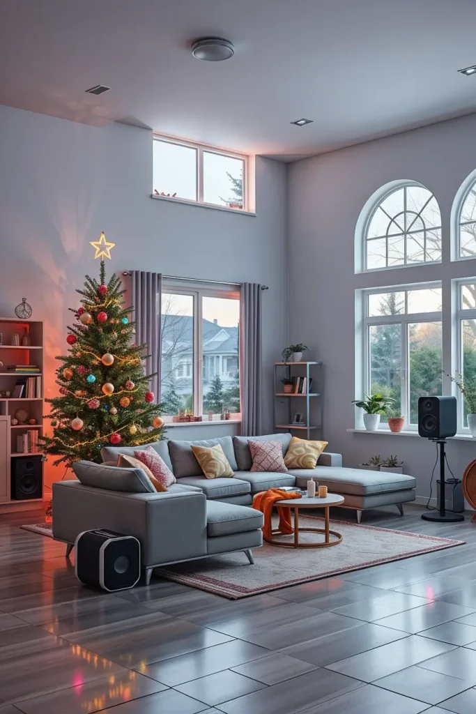 I would suggest to install them on the main Christmas tree, windows or rooflines. At home, I prefer to combine them with modern minimalistic furniture such as sectional couches, minimalistic shelves, and smart speakers to ensure the design is coherent.