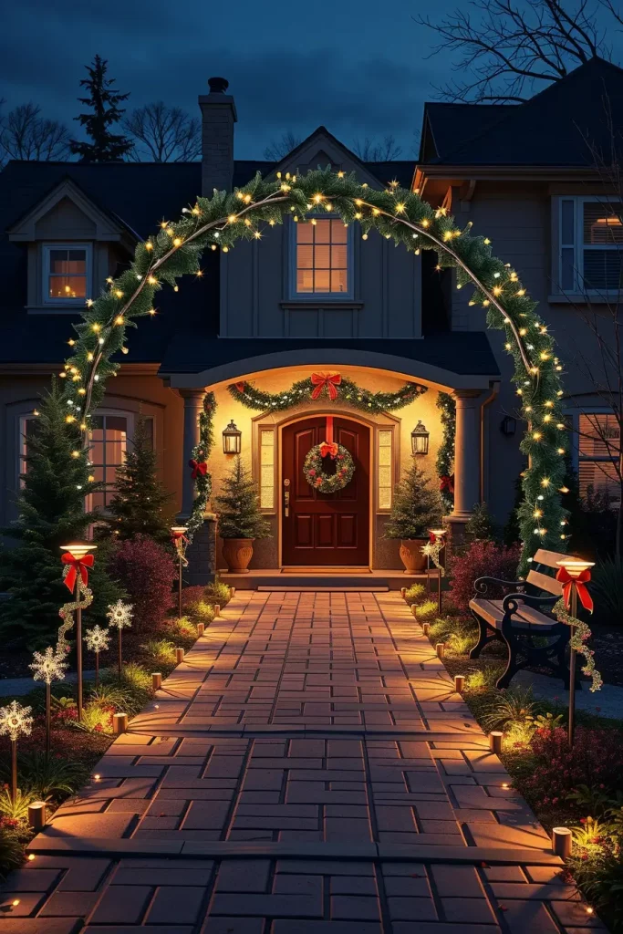 One of the most feasible and classy methods of welcoming guests in the festive season is to light the pathway and driveway. I usually suggest to use soft white lights to have a classic appearance, however, colored ones could also make the entrance playful and jovial. The space can be made safer by marking the driveway with evenly spaced stakes of lights or placing ground-level lanterns, which will give the space the holiday feel.