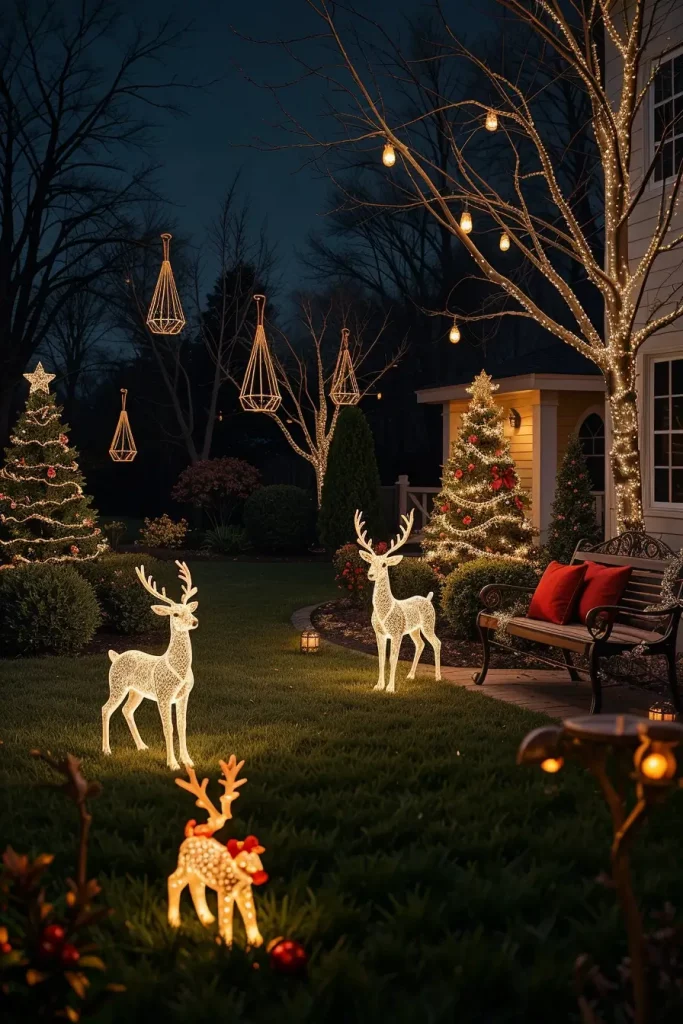 One of the most traditional and effective outdoor decorations is the wrapping of trees with lights. I will use warm white or multi-colored strands and will be spiraled around the trunks and branches tightly to give it a professional look. Wrapping a number of trees in big yards produces a magical forest-like effect.
