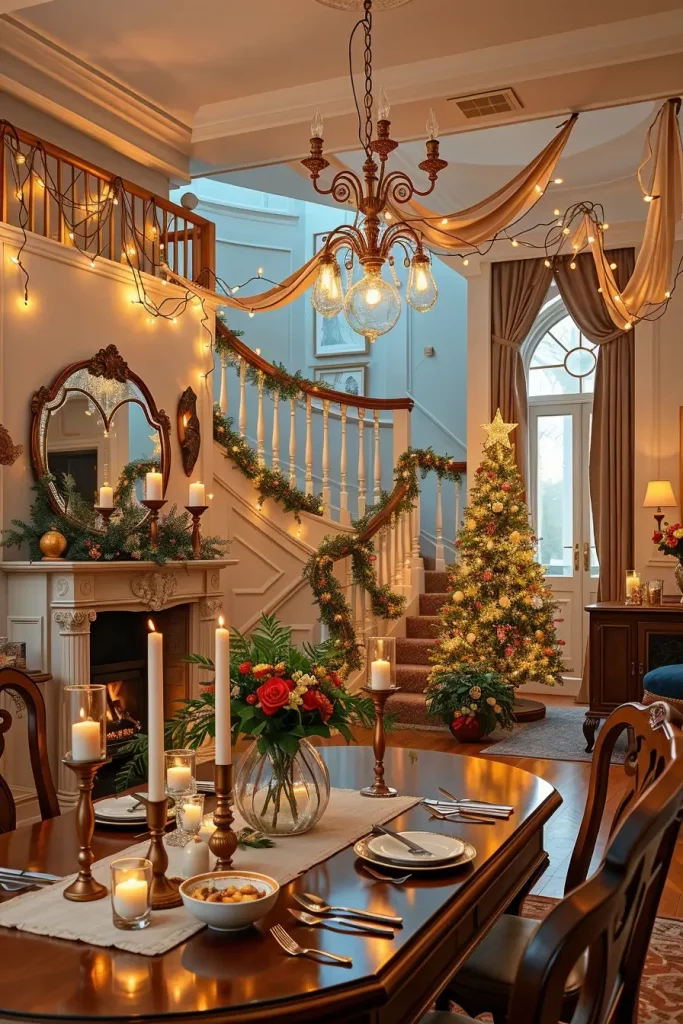 I also enjoy using things that are beyond the norm of string lights when designing holiday interiors. Among the most notable tendencies of 2025, there is the chandelier-inspired designs of Christmas lights. These fixtures are a mix of sophistication and holiday glitz, and functionality and adornment are united in a single element. A light-filled chandelier would be a dramatic element in a dining room or a large living room, and it would immediately be the center of attention of the room, which would represent a blend of modernity and tradition.