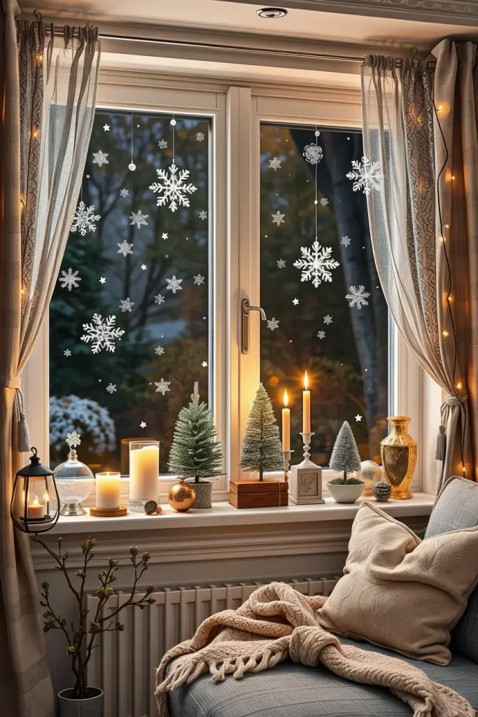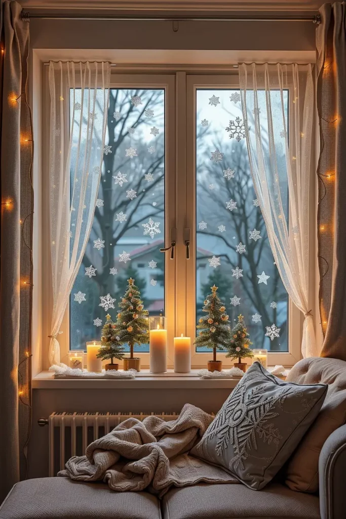 Festive charm is best on windows, which are frequently neglected. I prefer to hang frosted window stickers, snowflake figurines or blinking light curtains to ensure the view appears magical either indoors or outdoors. It may also be frosty by adding layered curtains in winter colors such as icy blue or silver.