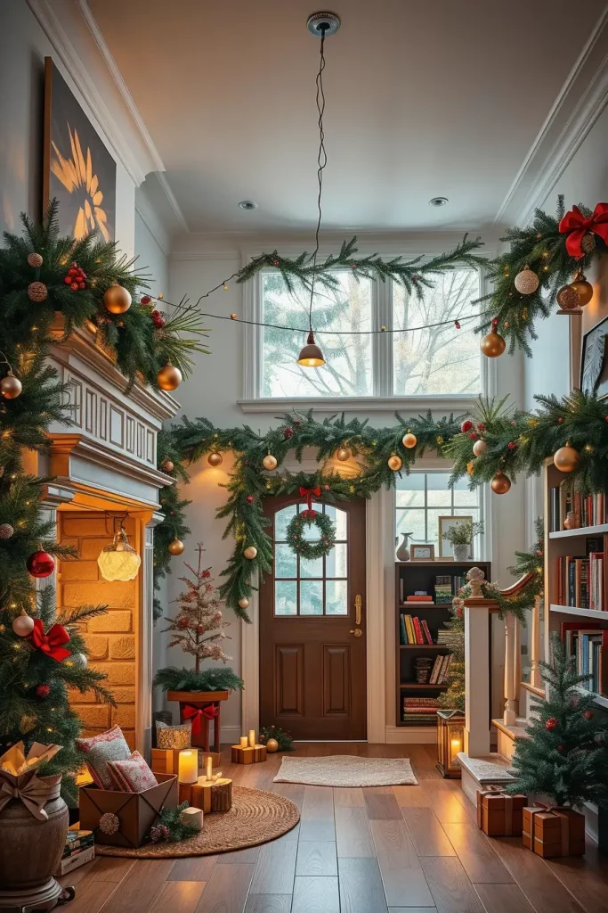 A mantel in a fireplace has always been part of the centerpiece in the holiday decor, and in 2025 it is all about making it a place that feels warm and classy. I would start with a natural garland, cover it with fairy lights and place ribbons of deep red, deep green forest. Such little details establish a vacation atmosphere but do not seem crowded.