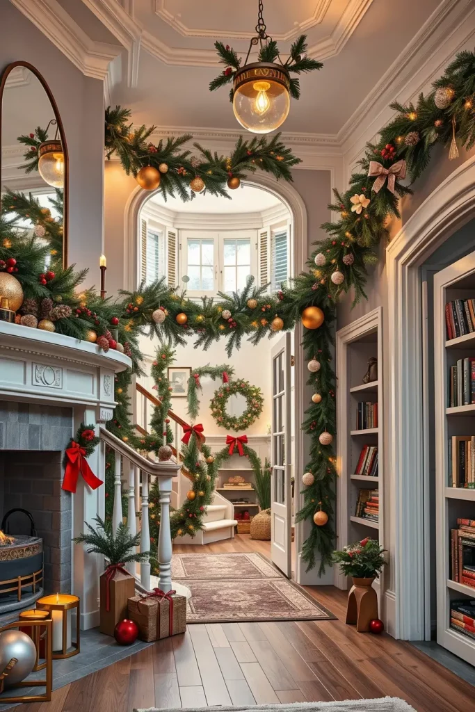 The traditional Christmas features are garlands and plants, and in 2025 they remain a necessity. I prefer hanging them over mantels, stair railings, and door frames and always using fairy lights or ribbons to make them more of a festival. New greenery adds freshness and naturalness, whereas fake ones are long-lasting and can be used repeatedly.