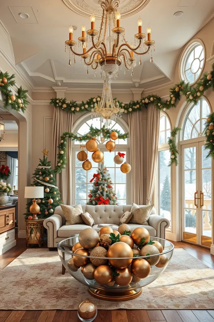 I do not only consider ornaments that sparkle as focusing on the Christmas tree only. This has changed in 2025 where hanging decor is predominant and covers the entire room. Chandeliers in the air are hung with ornaments, garlands of baubles, hung across doorways, ornaments in glass bowls on table tables everywhere make a holiday gleam.