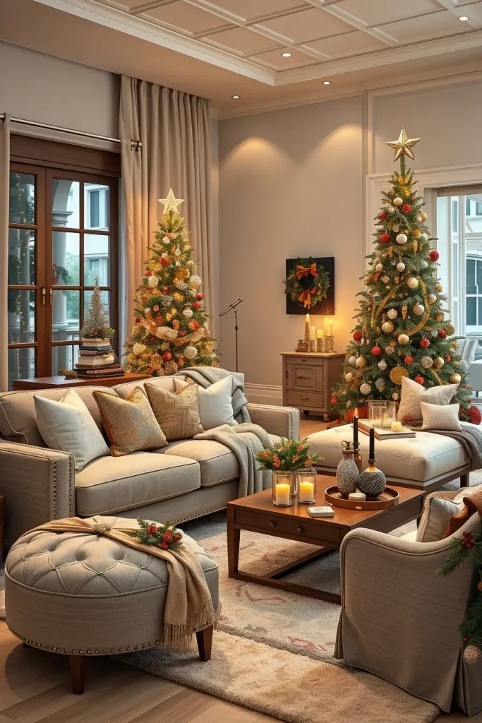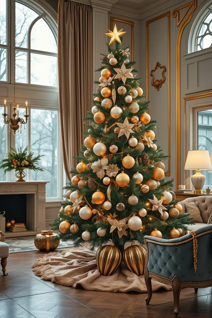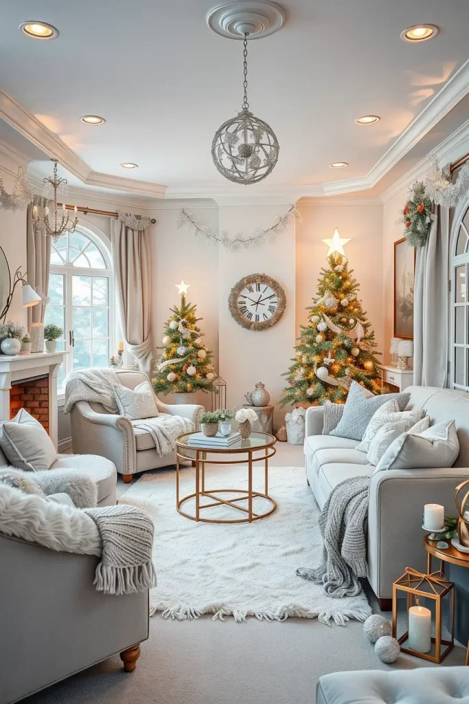It has always been my favorite how a mix of gold and silver in Christmas room decor is timeless and elegant. Light is well reflected in this glamour style and the result is a glittering effect that is luxurious and celebratory. During my design of such room, I consider balancing, too much gold can overpower, and too much silver can be cold. The trick lies in the combination of both of them in equal volumes, which is backed up with a neutral background like cream or white walls.
