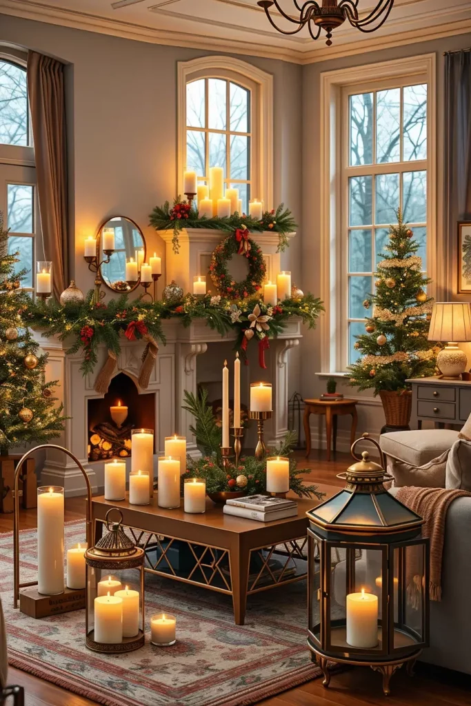 The beauty of candlelight in holiday decoration has been long stressed by interior designers in Martha Stewart Living, and I fully support this, it is the easiest method of making a room magical.