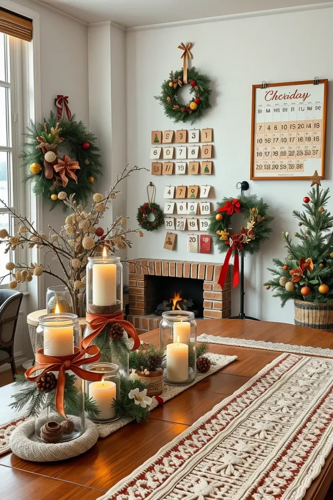 I also tend to use mason jars as candleholders, stuff them with faux snow and then tie them with red ribbons. The other popular one is the handmade pinecone, dried fruit, and twine wreaths. The advent calendar may also be hung on a string of small pouches which represent a DIY advent calendar. Shelves or coffee tables may be decorated by using handmade wooden figure 4 or knitted runners.