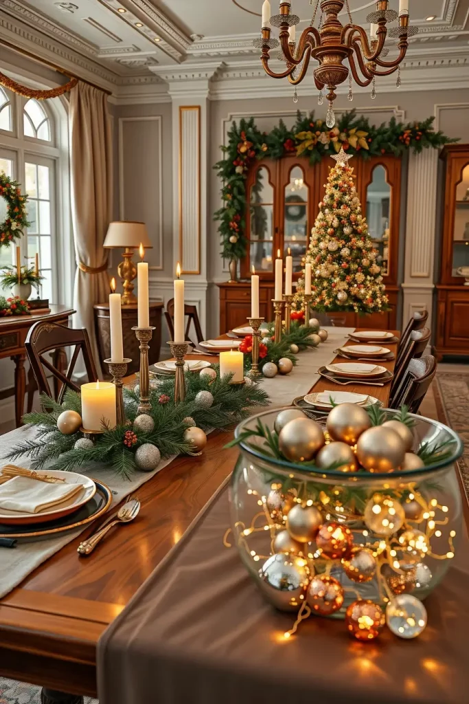 I tend to suggest using candles, greenery freshness, and metallic objects. As an illustration, a long dining table may have a row of tall candlesticks with pine branches and baubles in between. A coffee table centerpiece could be placed in the living room where a decorative bowl of ornaments, fairy lights, and fresh holly could be placed. The elegance of the arrangement can be supplemented by the use of additional furniture such as a polished wood table.