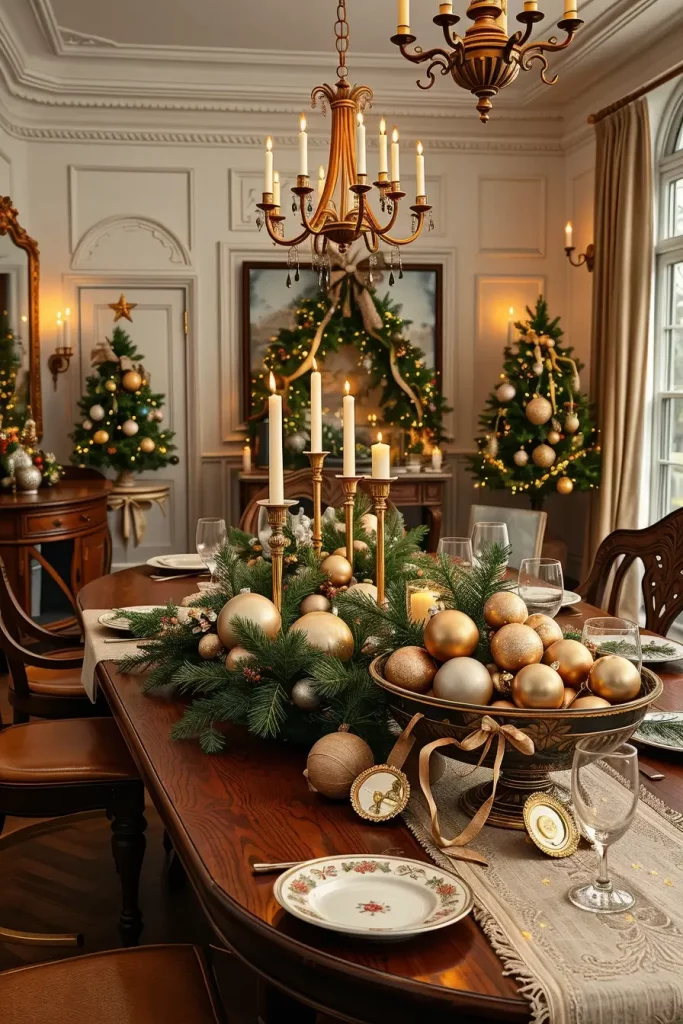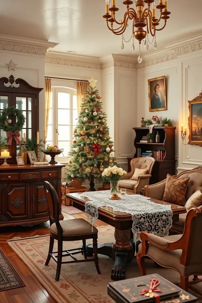 Some of the key items may be antique furniture like a dark wood sideboard, old glass decorations on the tree and table runners with lace or embroidery. Numbers of classic nutcrackers, porcelain figures, and brass candlesticks also fit well. Reusing things belonging to the family, such as old Christmas stockings or old china, is also a part of the theme.