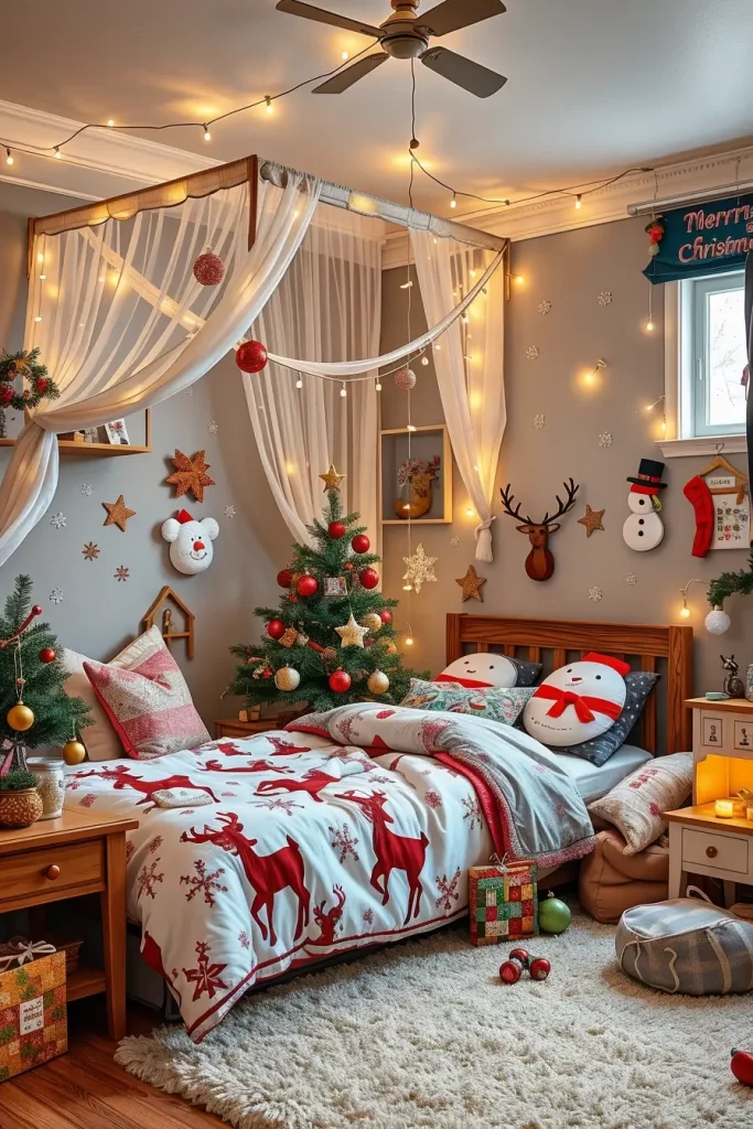 The furnishings do not have to be as radical, but the bedding and soft furniture are essential. The room can be immediately changed by the use of holiday-themed bedding that has cutesy prints such as snowmen or reindeer. Another one I like is the wall decals which are easy to stick and to take off at the end of the season. The space can be further enhanced with a comfortable beanbag or reading nook that is covered with Christmas pillows.