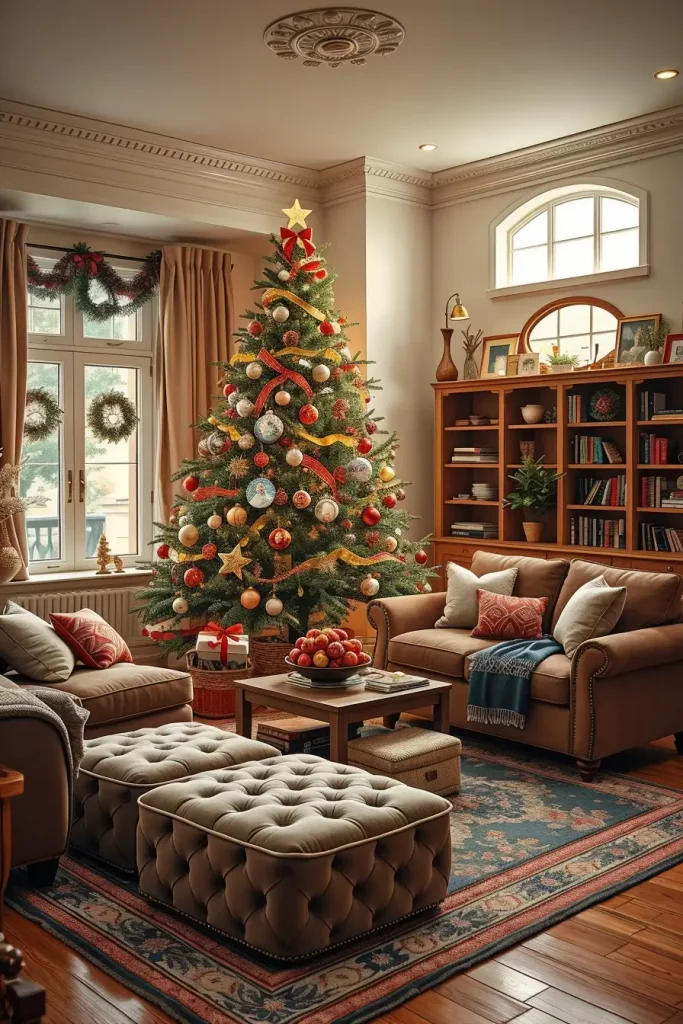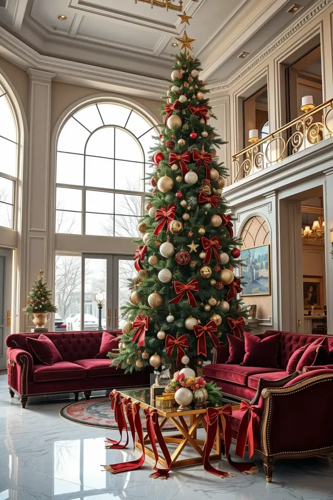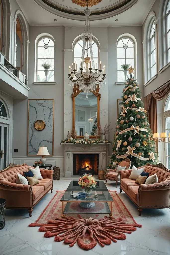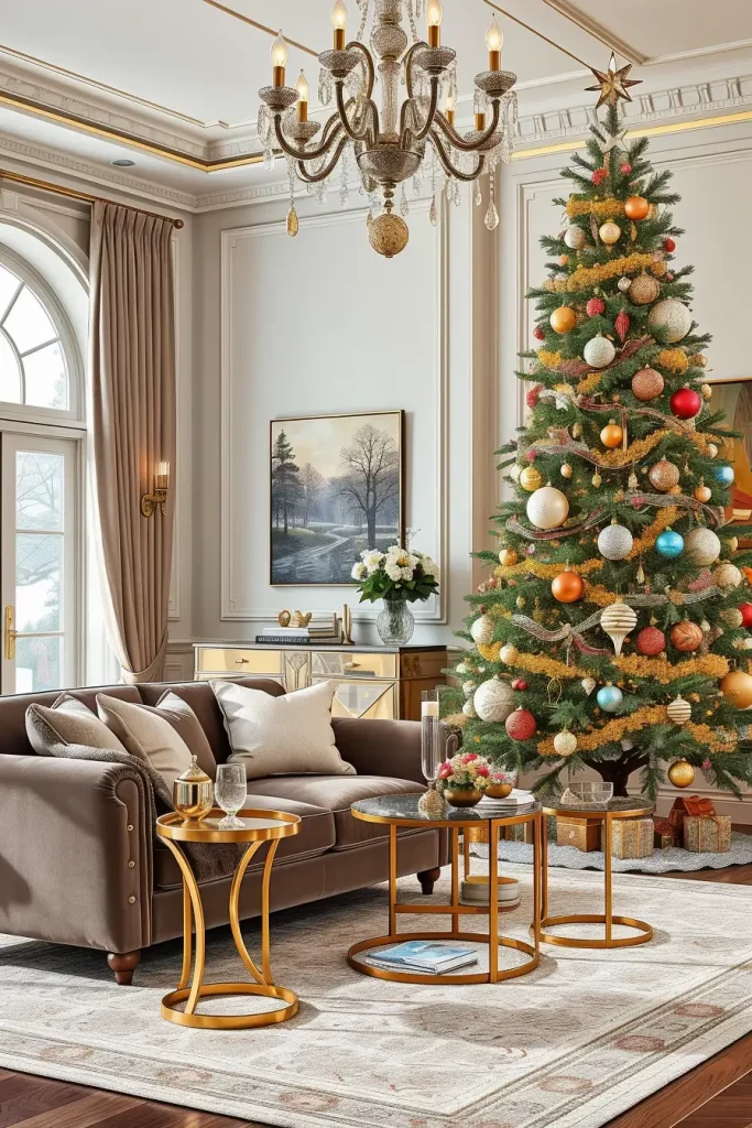 Luxury is a matter of detail and in Christmas tree decorations ideas 2025, designer items are even better than ever before. I envision a spacious living room with high ceilings, marble fireplace, and luxury furniture, which surrounds an exceptionally tall tree full of crystal ornaments, swarovski decorations, and designer-ribbons. The whole room is very classy.