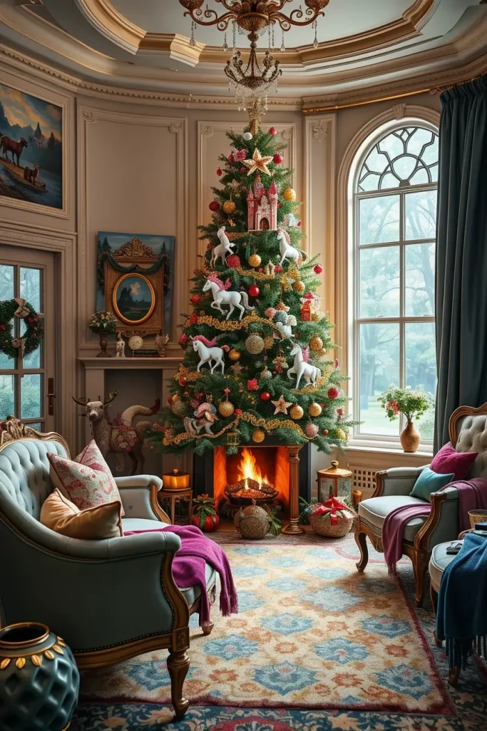 Another idea that can be used in 2025 is a fantasy-based Christmas tree that will be inspired by fairytales, myths, or even popular movies. I have also painted trees that remind magical forests or winter wonderland and they are always astonishing to the guests. This design is best suited in living rooms that have dramatic drapes, cozy fireplaces and elegant coffee tables.