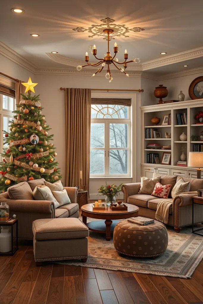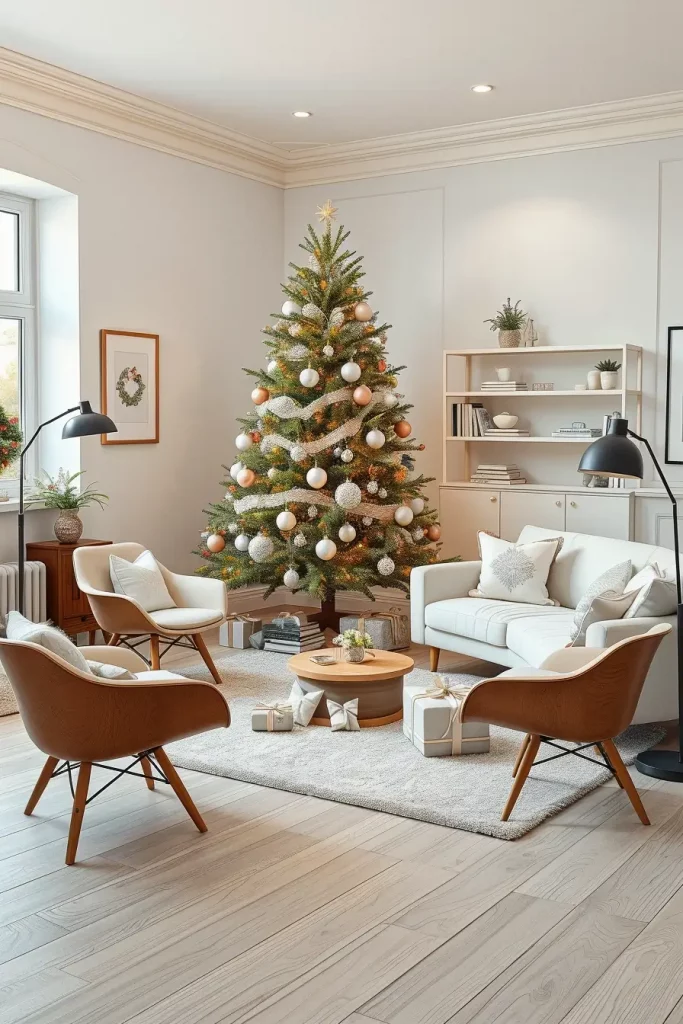 When clients request me to offer a solution that would make them feel stylish and at the same time understated, I will always suggest focusing on a classy Christmas tree. The concept of 2025 is built on symmetry, the judicious use of ornaments, and decoration in color. Think about a living room in Scandinavian style with elegant lines and wooden floors that are light, and a sectional which is white. The tree is clothed in modest palette: maybe silver, blush, and champagne gold with limited, but luxurious decorations.
