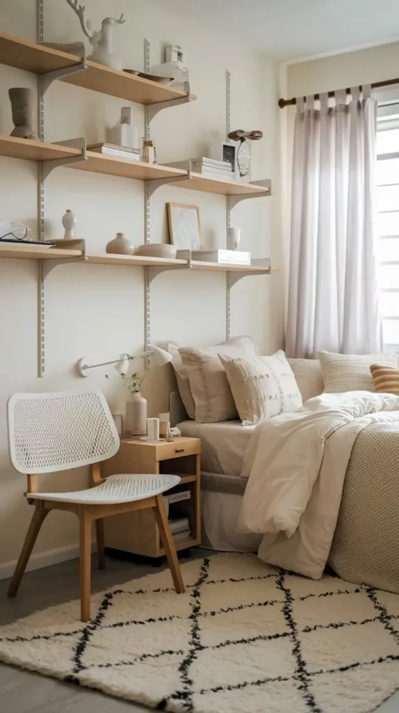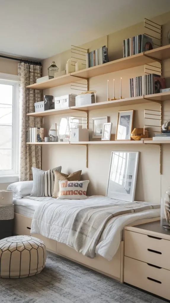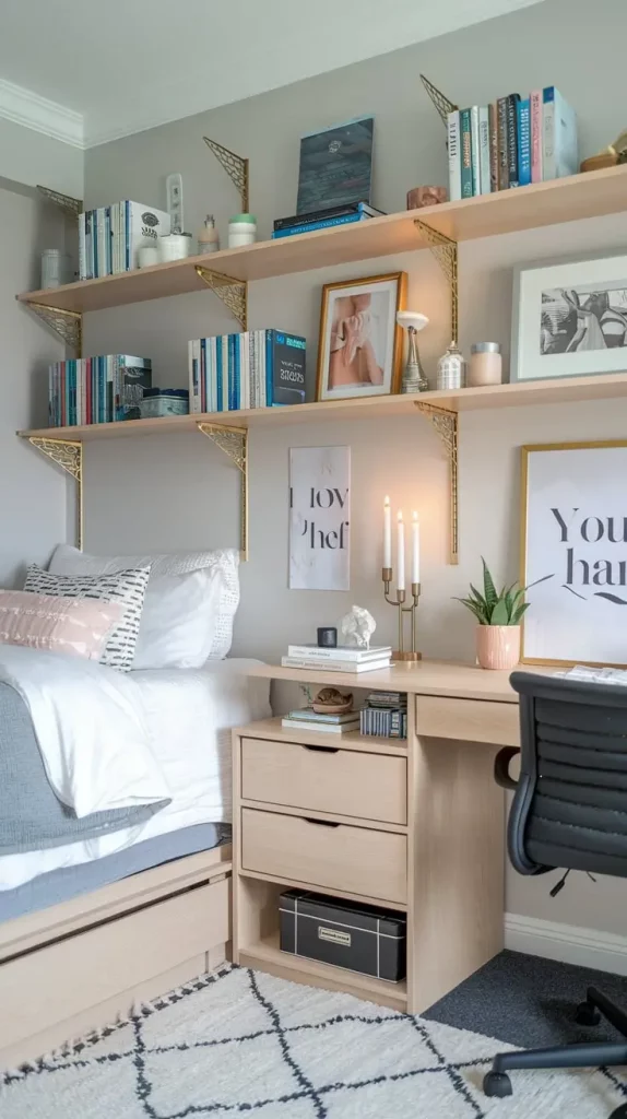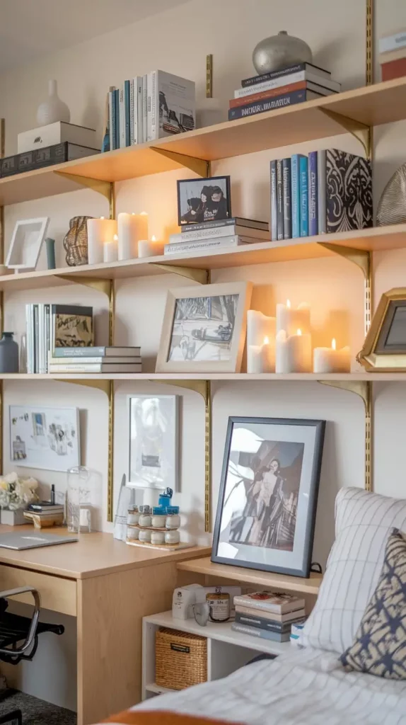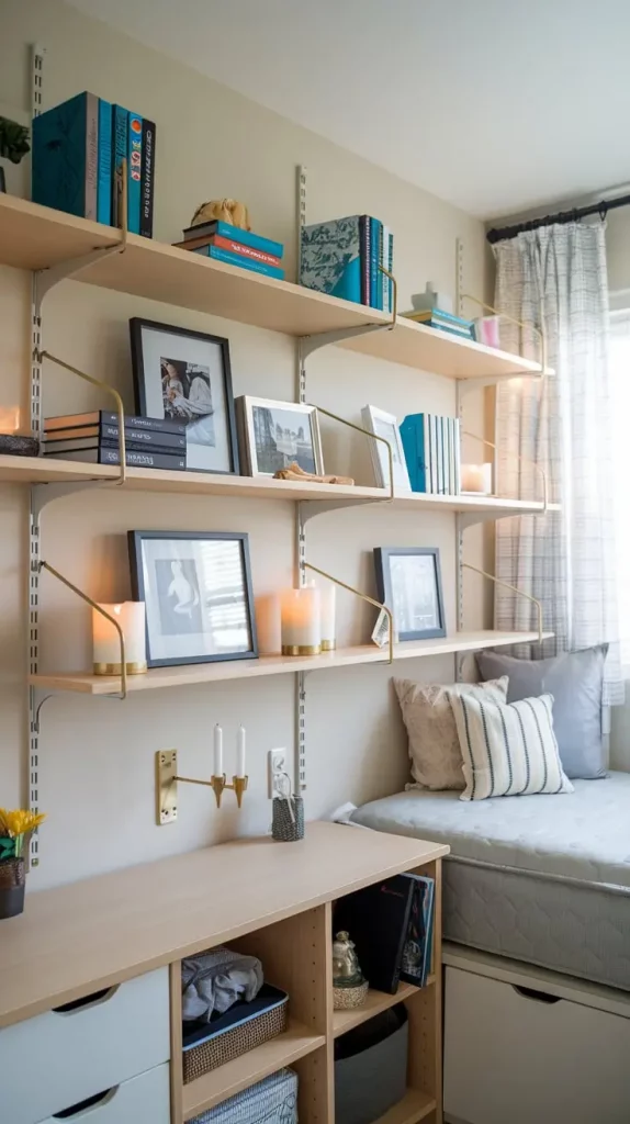 The shelves that you see floating are not only storage; they are fashion statements in the dorm rooms of 2025. I normally refer them when it comes to optimization of vertical space. Dorm rooms are tiny and every inch matters – at least, over the desk or the bed.