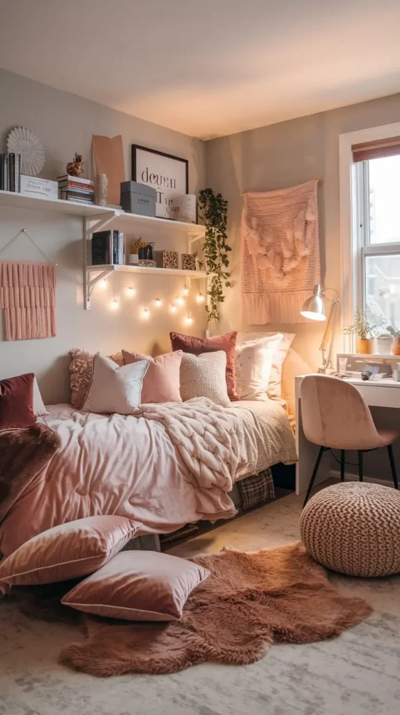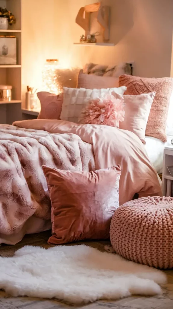 Plush feelings are one of the simplest methods of toning down a dorm room. The likes of velvet, faux fur and thick knits are always a layering favorite of mine. Those textures will provide immediate relief during colder weather or with fluorescent bulbs in the dorm. A 2025 dorm must appear modern, of course, but it must feel like kind of a hug as well.