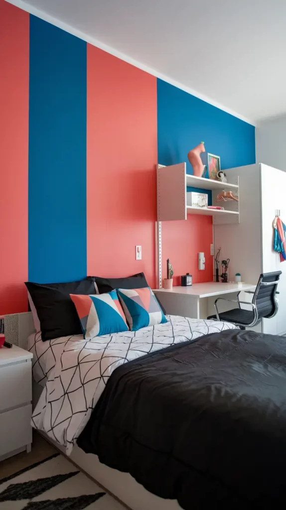 I assisted a design major one time to redesign her dorm using tangerine and blush pink blocks in one wall combined with black and white beddings. She has contrasted her space to look courageous and styled. Elle decors 2025 dorm trends feature portrays that expressive color blocking defines that the most effective way to make a place feel personal is to express the colour blocking.