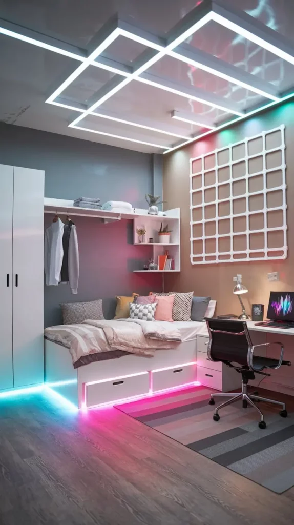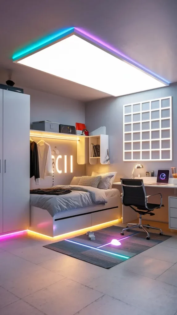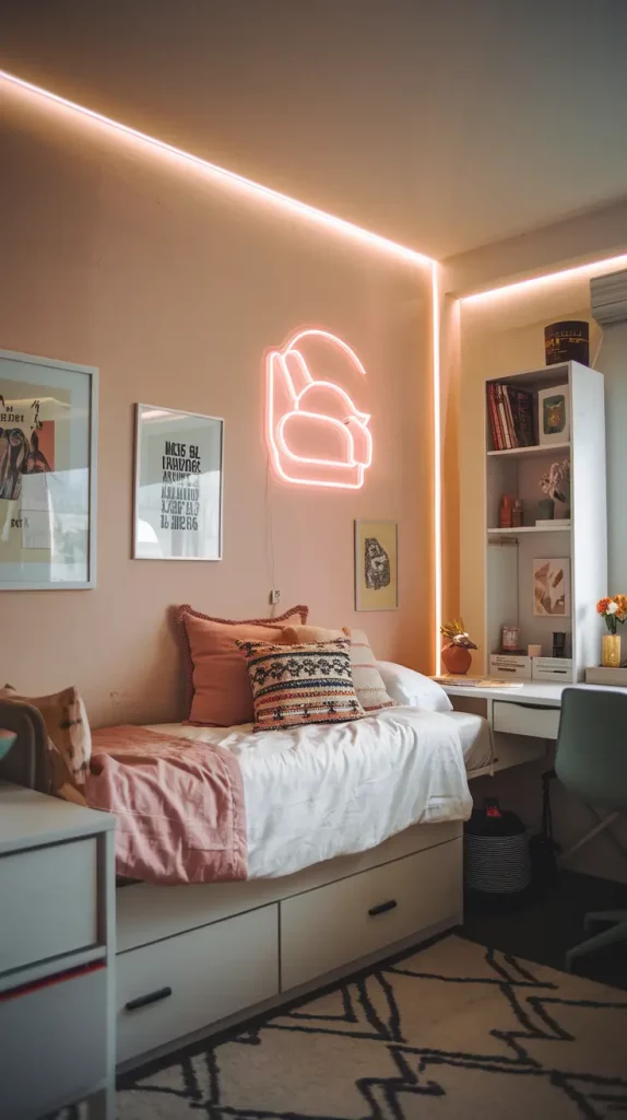 By 2025, the LED lights have developed past string lights. LED lighting has become the focal point of the dorm room aesthetic design this year due to its popularity in people with an affinity to smart options and dramatic results. I would recommend this appearance to the students who appreciate technology, mood creation, or want their room to be both the study space and the chill-out lounge within a few seconds.