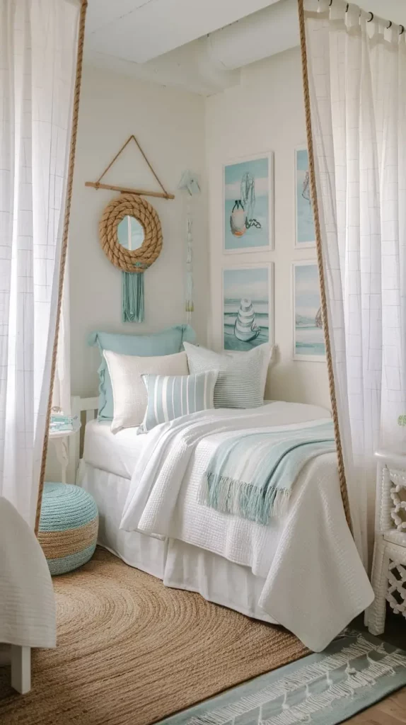 Are you in a mood to relax and enjoy a breezy look? The seaside style is the best choice to use in the dorms of 2025. I would suggest this to the students who would want to establish a feeling of escape to the hustle and bustle of campus life. In light blues, white and sandy neutral, it is calm and fashionable.