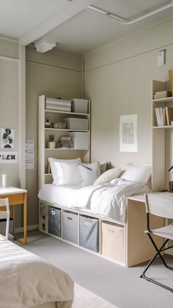The dorm rooms usually have limited floor space, and thus vertical solutions would be necessary. However, come 2025, students desire that they should be fashionable-not as garage warehouses. My secret to this solution is always multifunctional vertical systems: ladder shelves, wall mounted grids, and stackable systems which can be used as a decor and a storage.