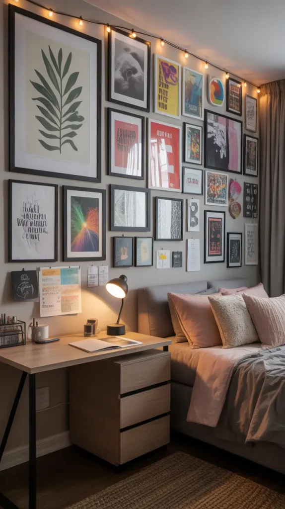 In designing wall decorations at the dorms, I consider lightweight decorations that can be easily removed without causing any harm to the walls. Framed prints, posters, cloth wall hangings, and temporary decals allow one to fill empty space easily and help to build a visual environment that is engaging. This is aimed at introducing style in the room without violating the rules of the dorm.