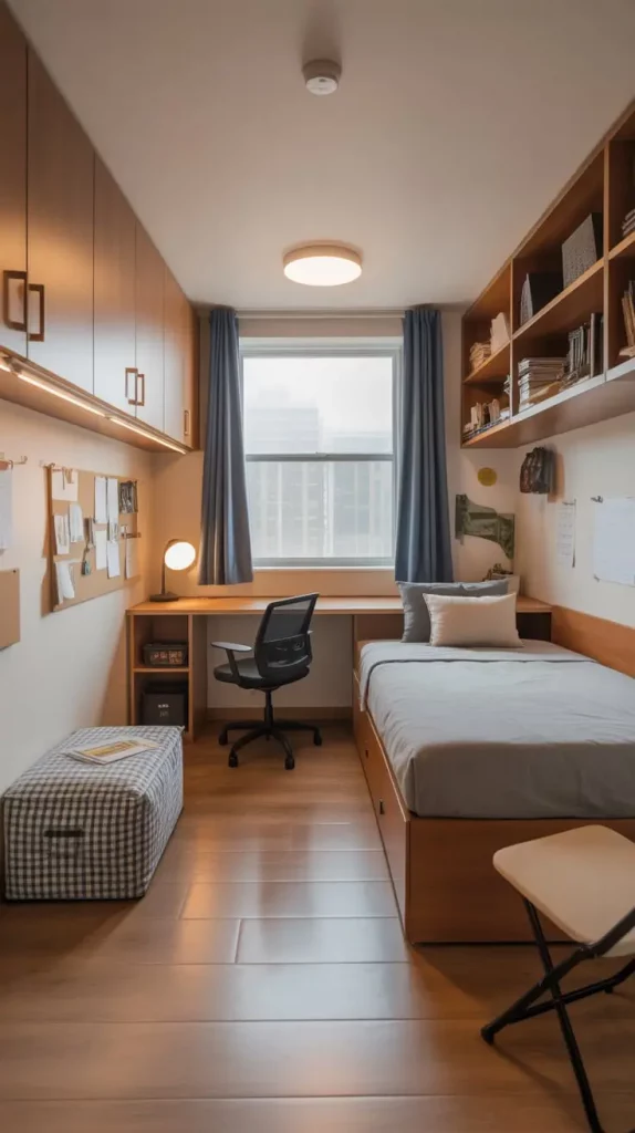 The initial thought that occurs to me when dealing with a small dorm room is the concept of vertical space and furniture that is multifunctional. The smallest dorm might seem very spacious in case all the items of furniture are used to perform multiple functions. In 2026, a substantial number of students will opt to use wall mounted shelves, collapsives or risers that can be folded to create more floor space to sit or store. The idea is to maintain the layout efficient and at the same time be warm and habitable.