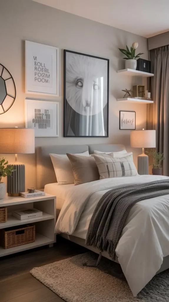 According to my preference, throw pillows, blankets, desk accessories, small pieces of art, decorative trays, wall decals, and special lighting accents would be among my favorite things to include. The inclusion of scented diffusers, a fancy clock or a decorative plant are also there to add to the space without overwhelming it. Every artwork must represent something or be aesthetically connected to the general theme of the room.