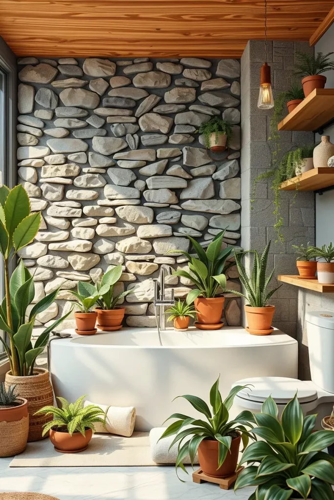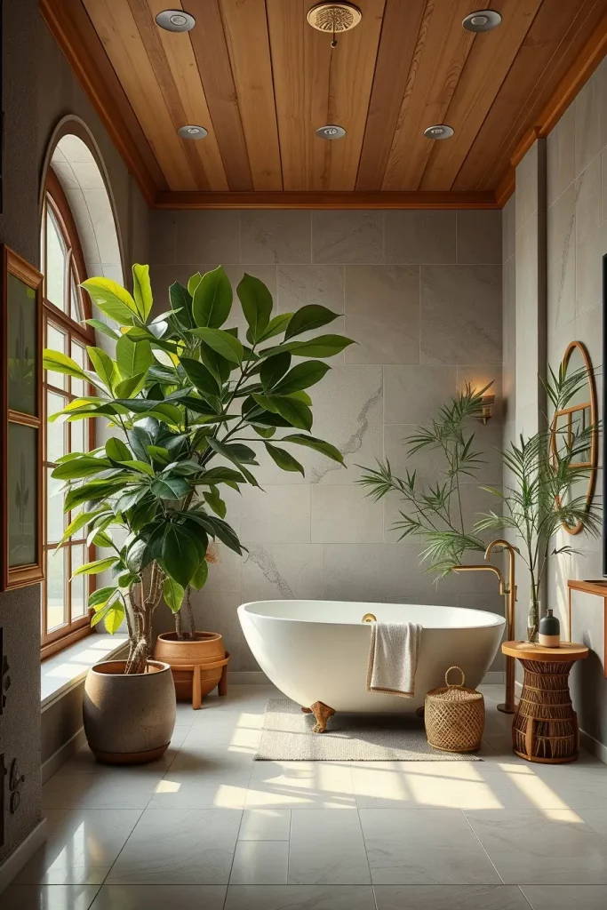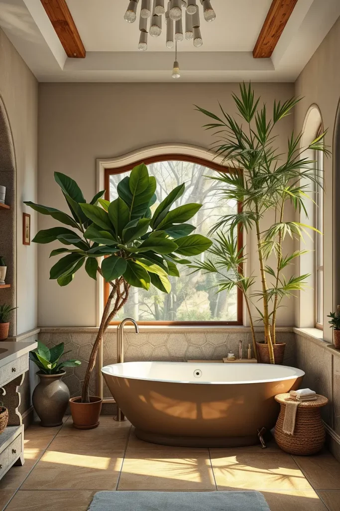 In bathrooms characterized by limited natural illumination, I suggest incorporating resilient specimens such as Zamioculcas zamiifolia, commonly known as ZZ plants, or alternatively, integrating artificial grow lights. Both strategies confer the dual advantage of ensuring vigorous plant health and reinforcing the space’s organic ambiance.