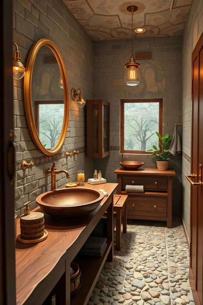 To retain equilibrium within an earthy bathroom, hardware should adopt a restrained form yet relay a tactile connection to the outdoors. I prefer slender, low-profile faucets crafted in brushed nickel, a soft matte black, or ceramics that replicate stone. Each option whispers refinement rather than shouts, allowing rustic materials—timber, rock, and organic accessories—to command the gaze while the plumbing quietly upholds the composition.
