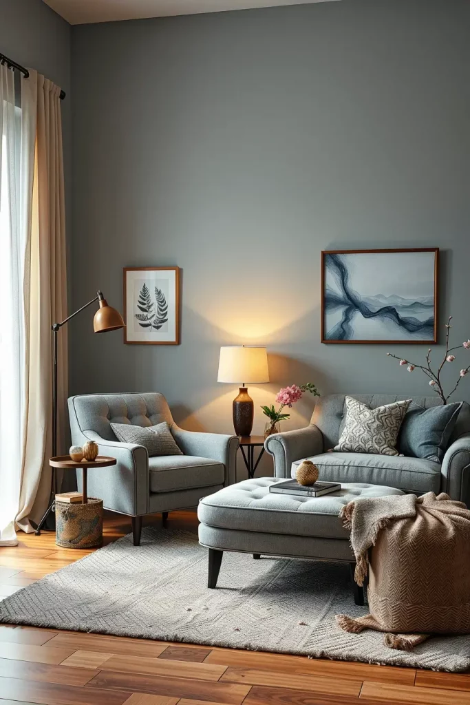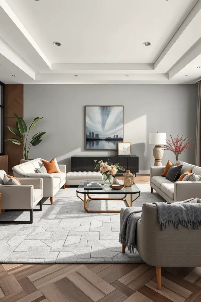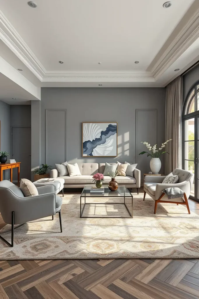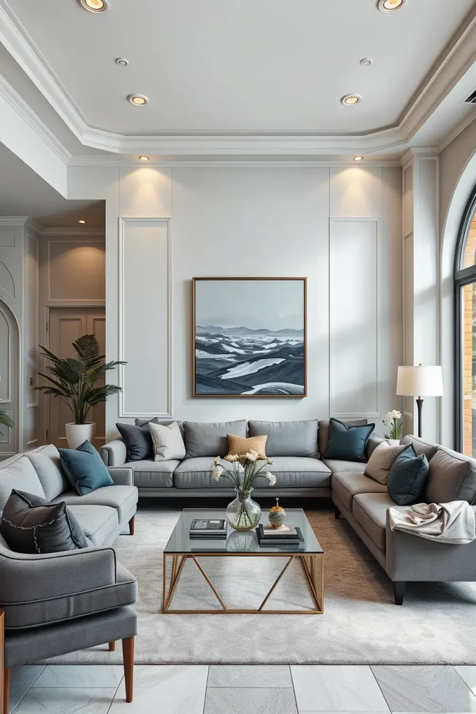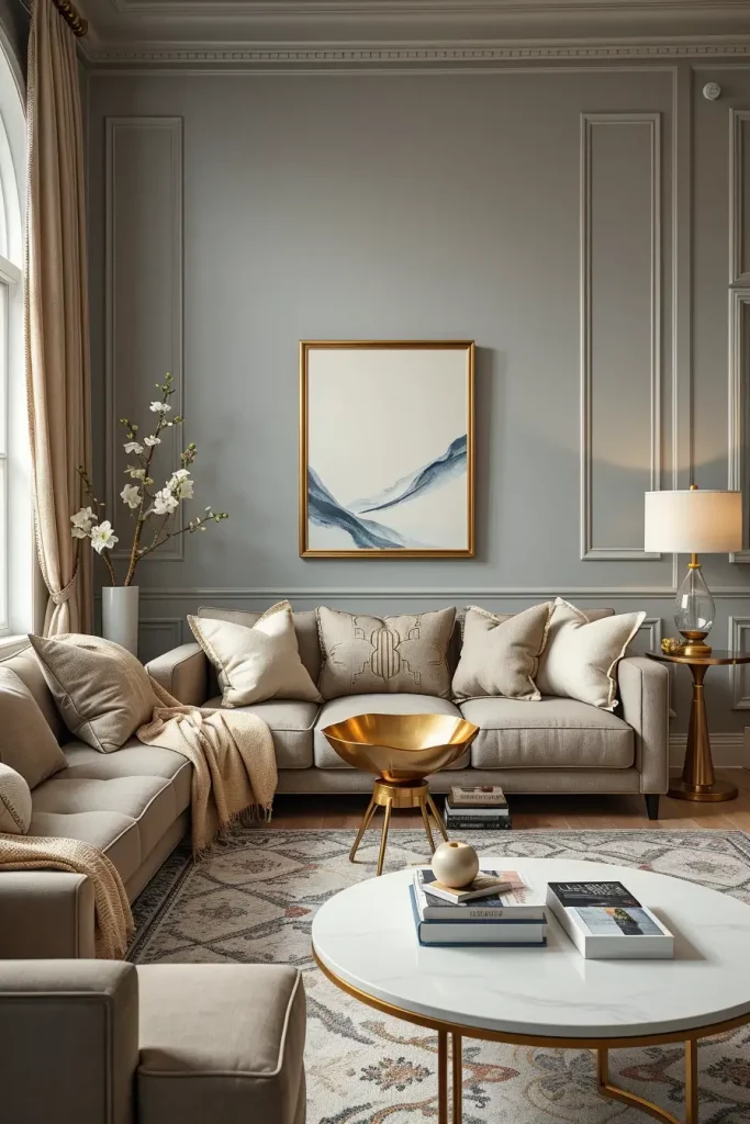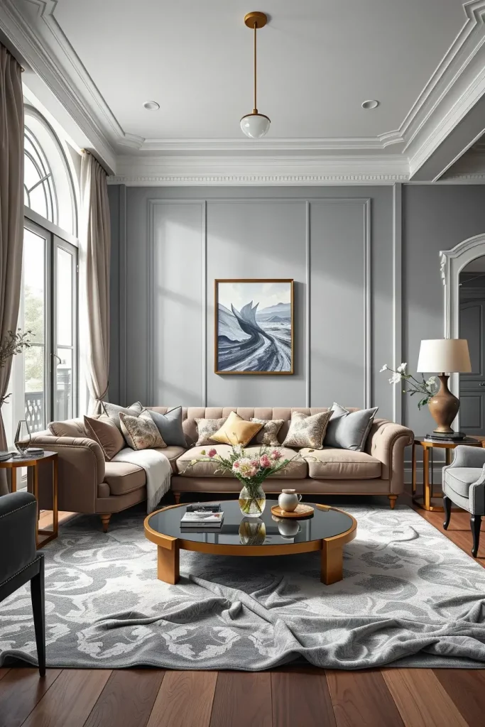 A balanced color scheme is one of my considerations when coming up with a beautiful gray living room. Gray is a flexible foundation, but when combined with complementary colors, such as warm taupes, soft blush, or muted navy, it makes a harmonious setting. An excess of a single tone can make a room look flat and so balance is the important thing.