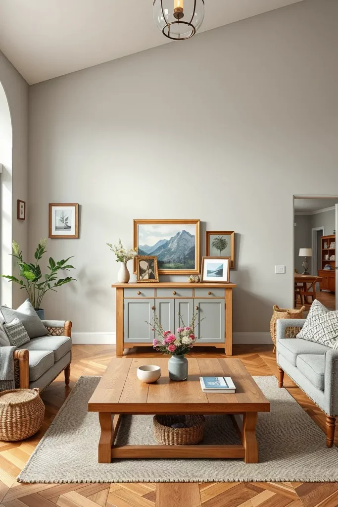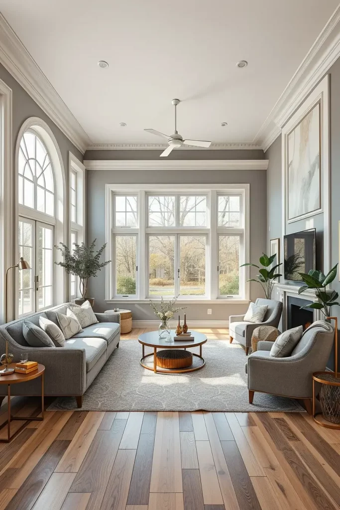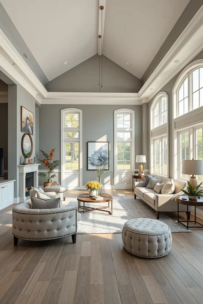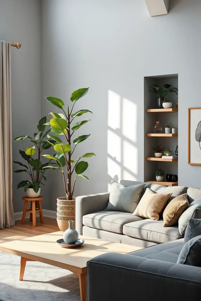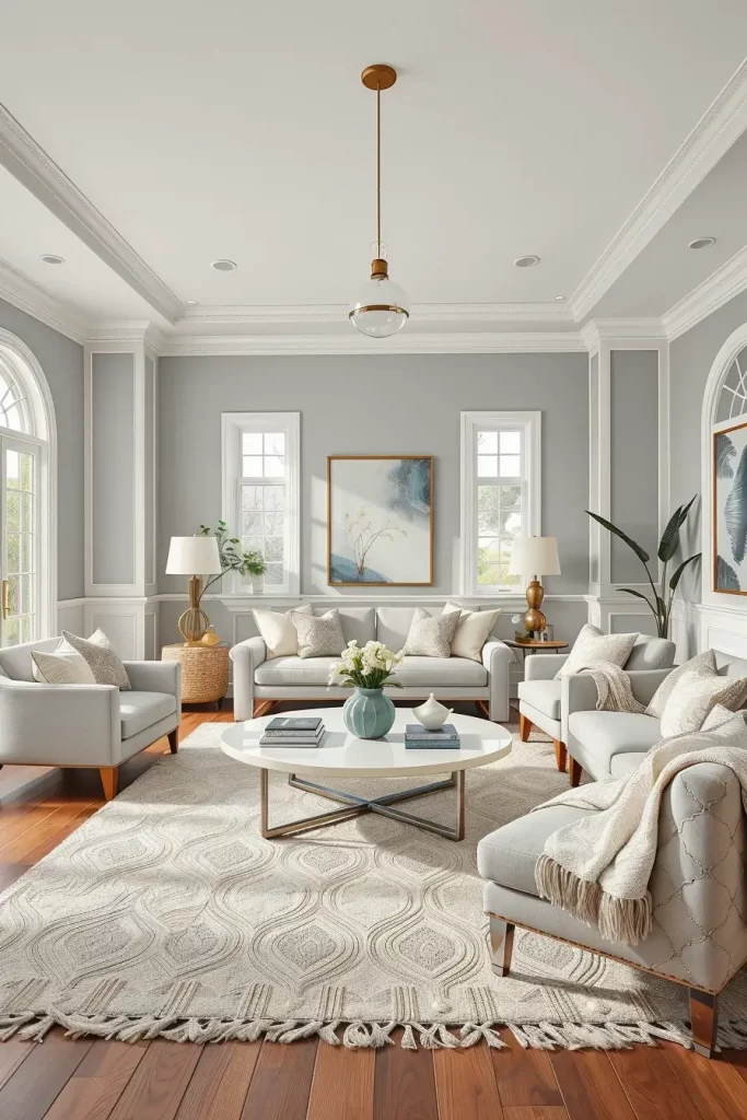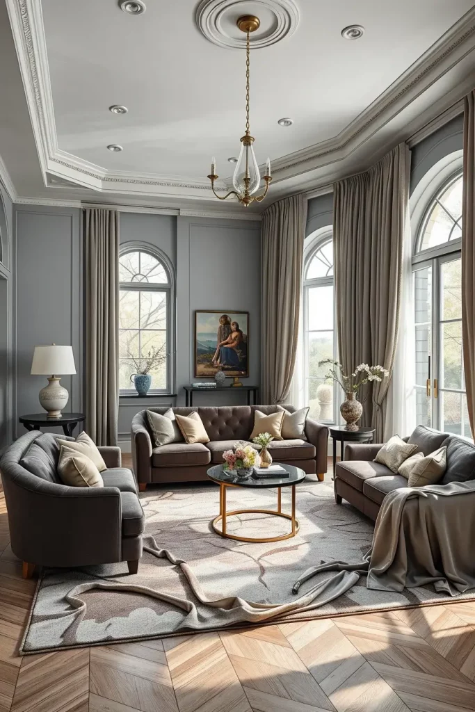 A balanced color scheme is one of my considerations when coming up with a beautiful gray living room. Gray is a flexible foundation, but when combined with complementary colors, such as warm taupes, soft blush, or muted navy, it makes a harmonious setting. An excess of a single tone can make a room look flat and so balance is the important thing.