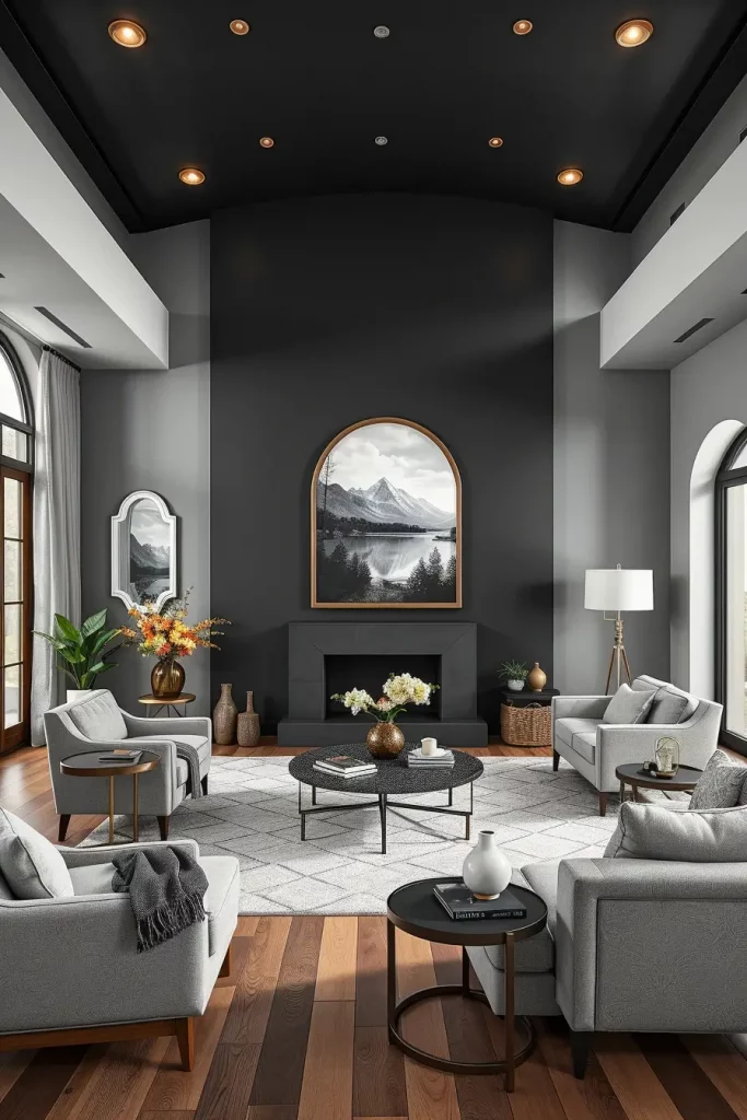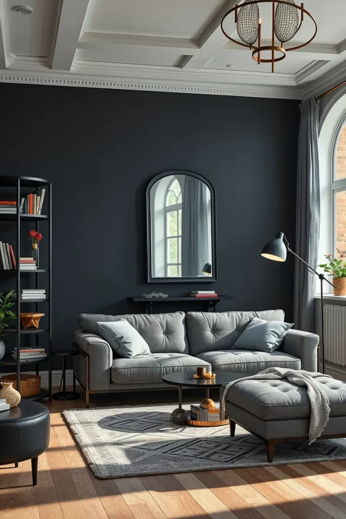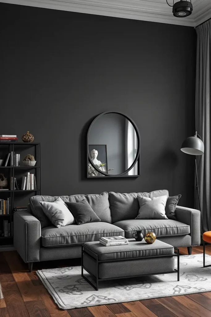 I tend to counteract this with lighter grays on the other walls, so that there is a visual hierarchy that attracts the eye where I want it to. The accent wall can be combined with a large-scale art or a statement mirror to make it serve as a design element.