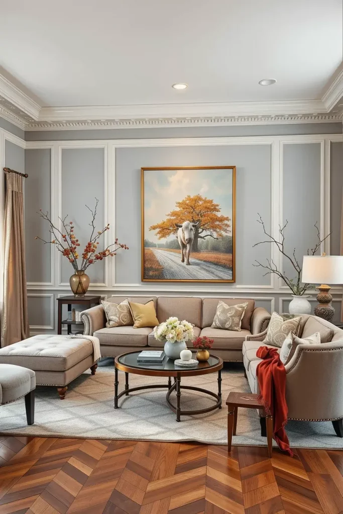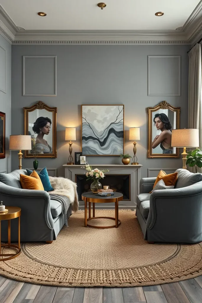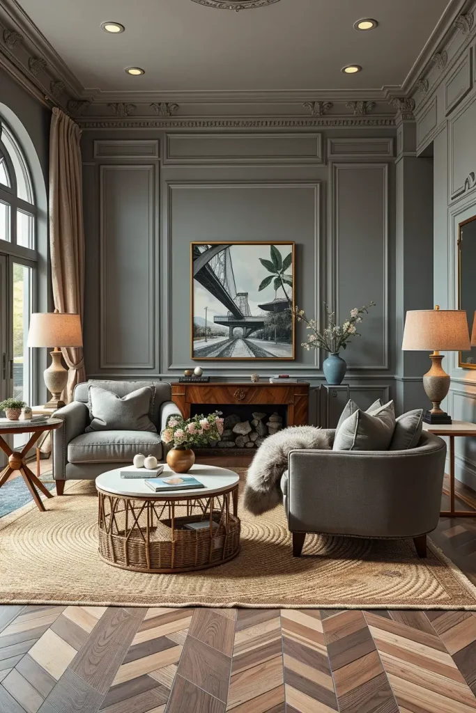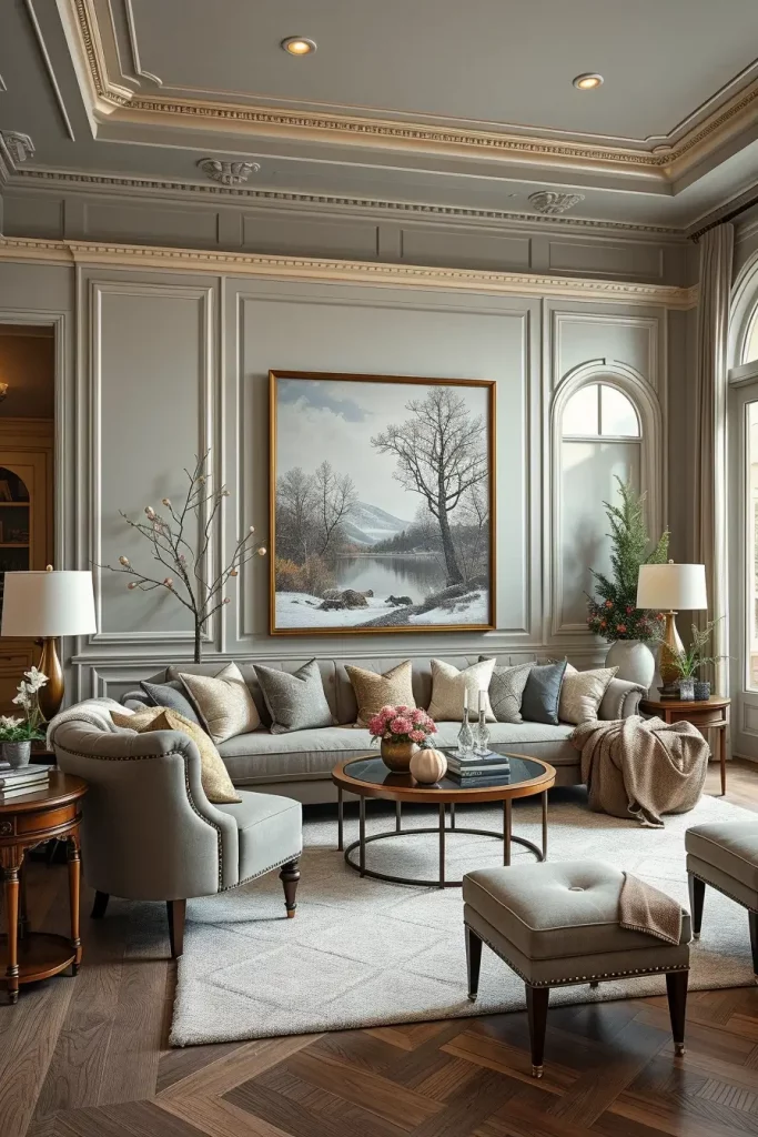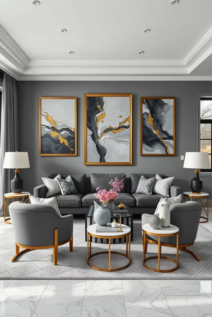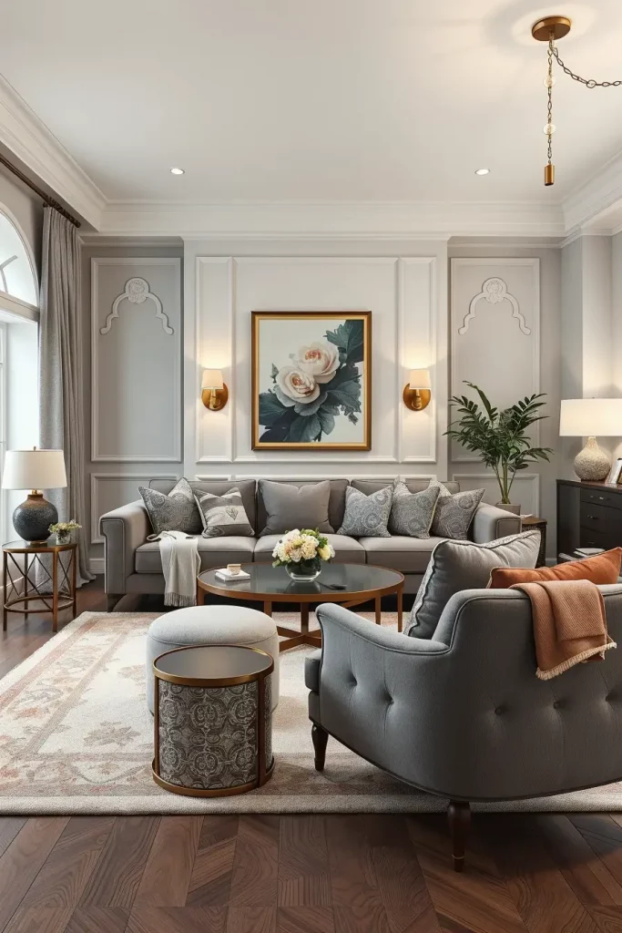 When it comes to designing a beautiful gray living room, I usually begin with artistic details since they immediately create the atmosphere of the room. Gray walls are far from bland with the help of artwork, sculptures and decorative wall panels that add texture and depth to the walls. With a neutral palette, well-selected art becomes the center of attention, which will help to ground the personality of the room. I have discovered that large framed art or even faint wall murals are perfect when used against gray tones as they add layers of depth without being too much.