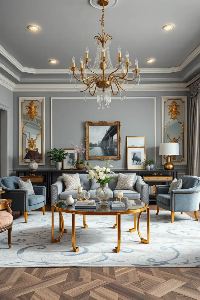 Metallic accents pair well with an elegant gray living room, and they create a touch of glamour without overshadowing the relaxing base. I prefer to combine brushed gold or warm brass with warmer grays, and cooler grays look fabulous with chrome or silver finishes.