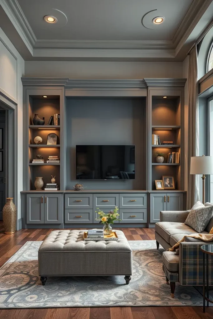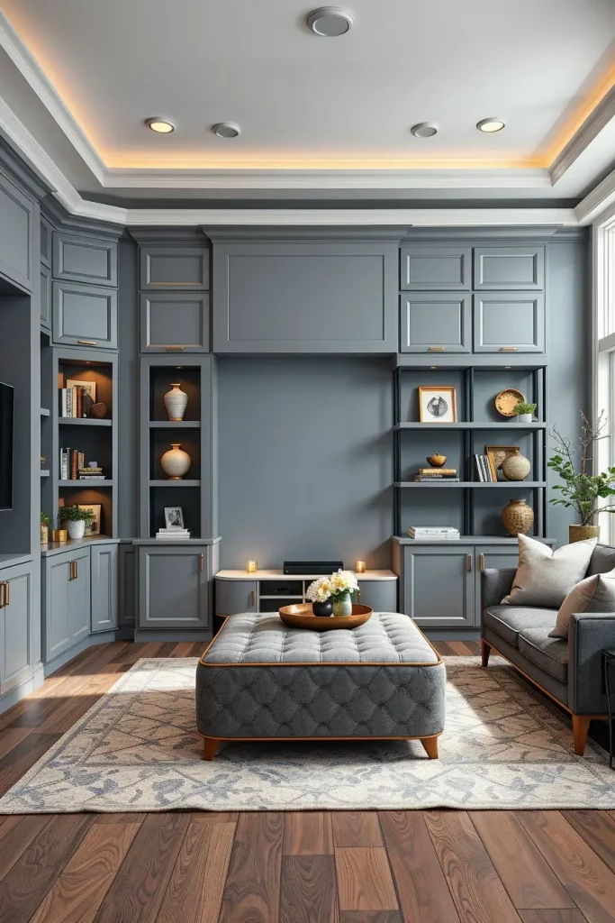 In creating a classy gray living room, I never fail to put into consideration how art will play with the dull colors. Gray is the best background of art and colors and textures can be noticed without dominating the room. I tend to suggest bigger statement pieces or gallery walls that are well curated to make a focal point. This is not just a way of adding personality, but also of attracting attention, which adds depth and sophistication to the space.
