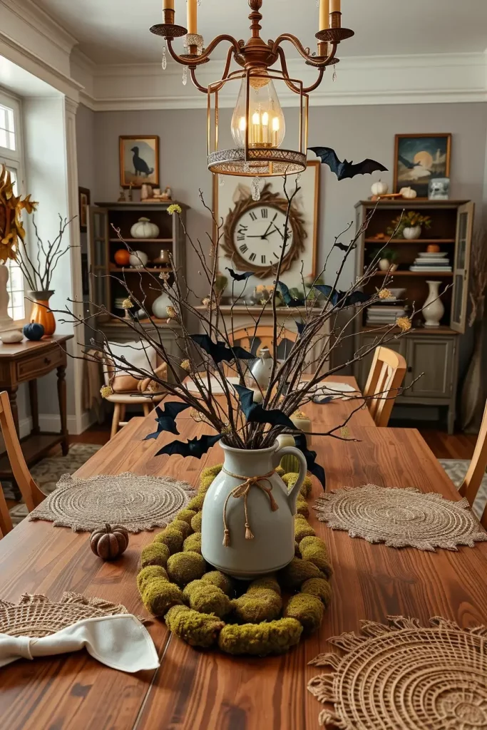 It has always felt earthy to me–as though the forest had moved in to party. Apartment Therapy recommends the trend of bringing the outdoors in as a major trend in 2025, and this centerpiece does so without losing the spooky mood.