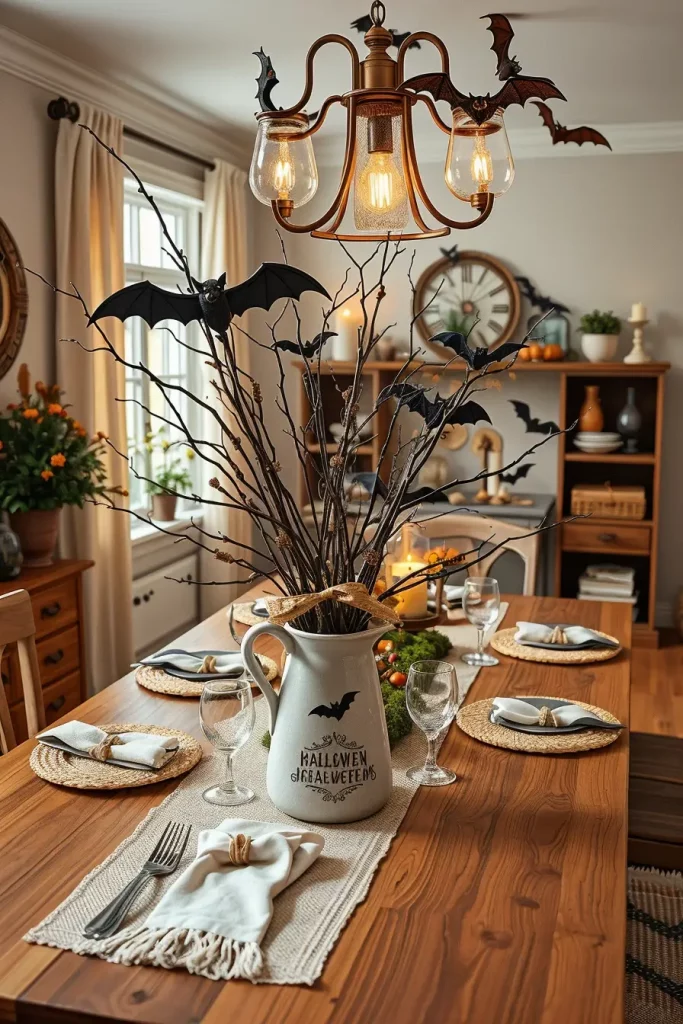 I have always enjoyed using natural materials in my Halloween decor and bats and branches give it an organic but creepy look. It is a fantastic idea in boho or Scandinavian-inspired decor, in other words, interiors with neutral walls, exposed beams, and raw materials, such as jute, wool, or wood.