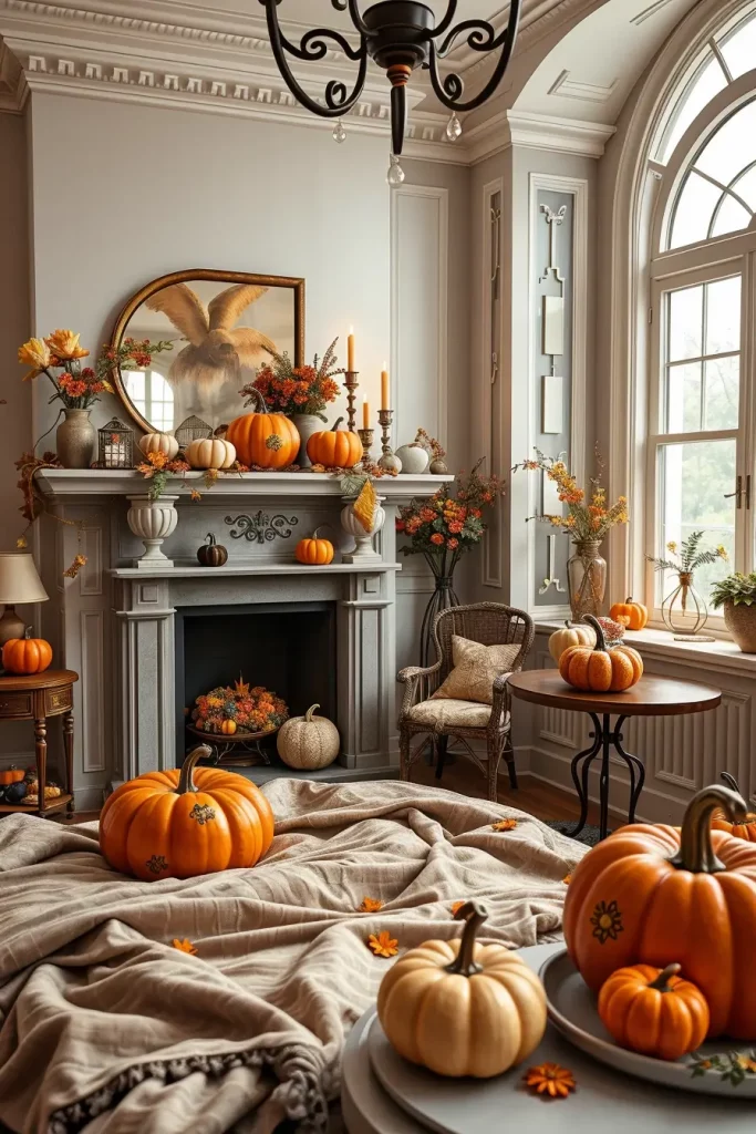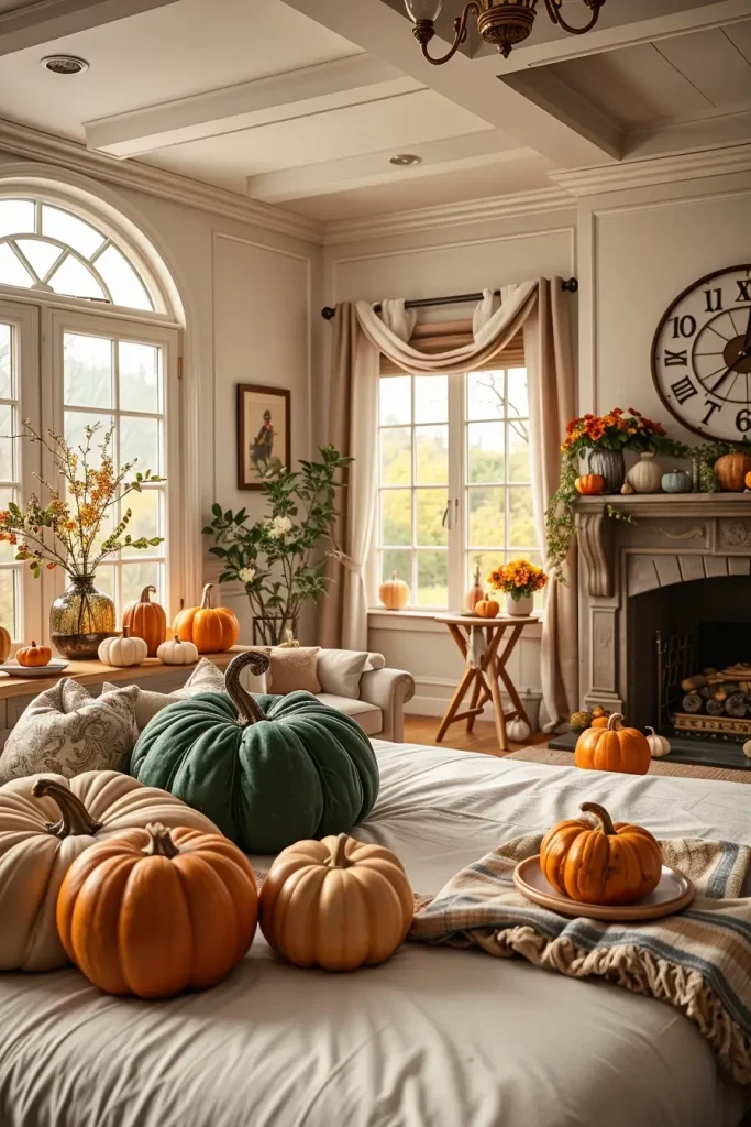To enhance this arrangement, you can think of including pumpkin-related linens or hand towels in the bathrooms or kitchens to extend the theme around the house.