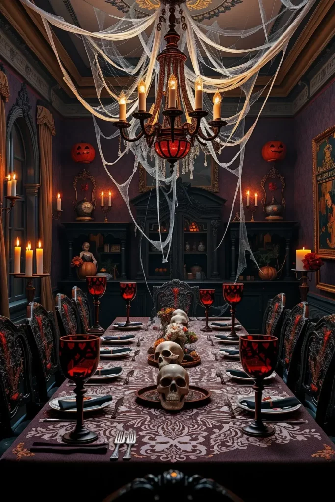 To have a full-scale Halloween decor of the indoors, your dining room is your stage. I like to make it a haunted banquet scene. Whether you’re hosting guests or simply want to enjoy a spooky family dinner, this space offers the most theatrical potential.