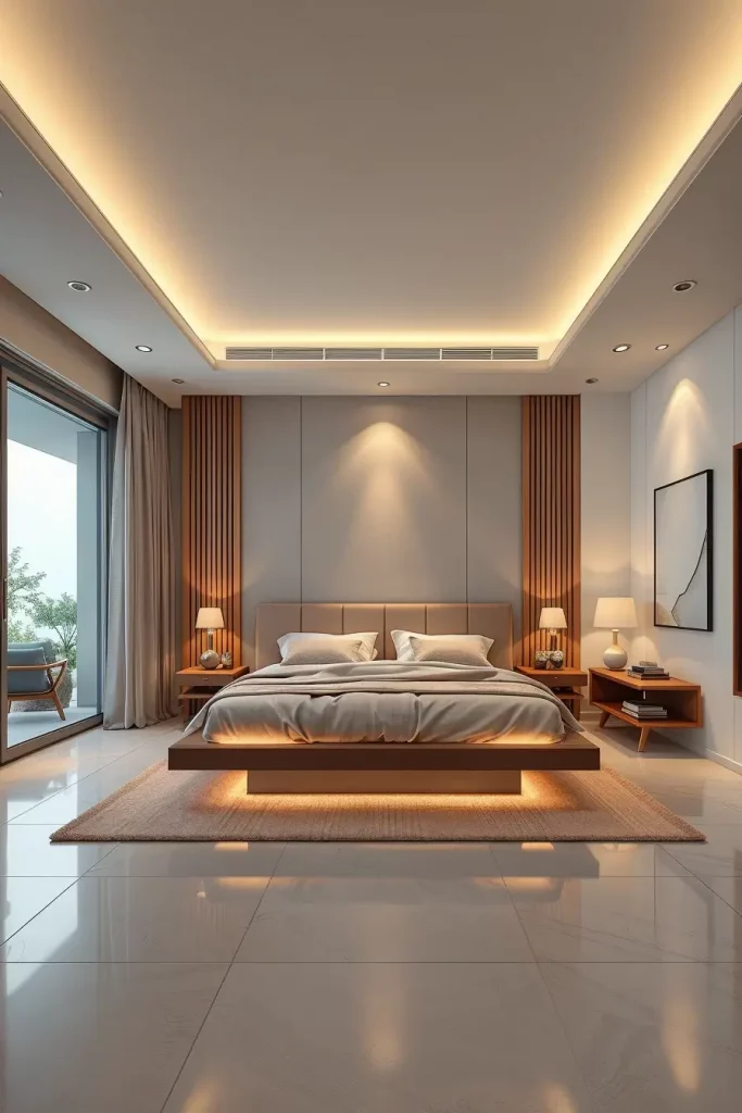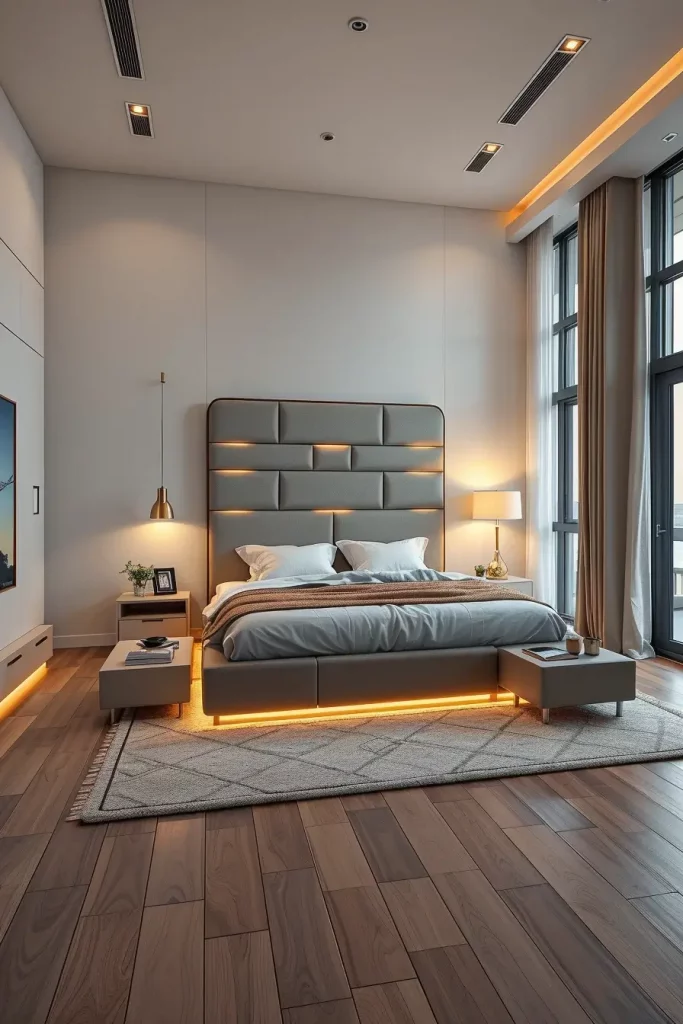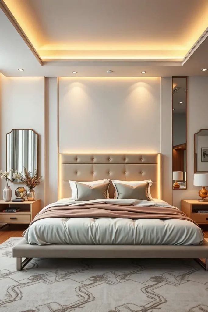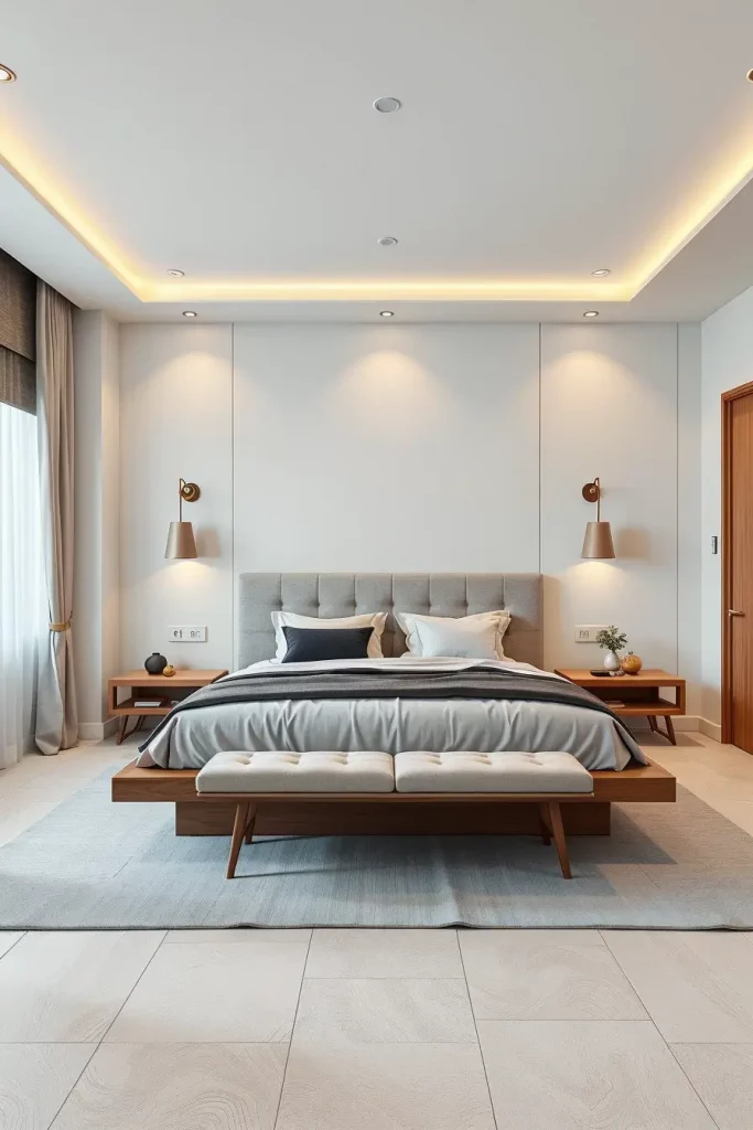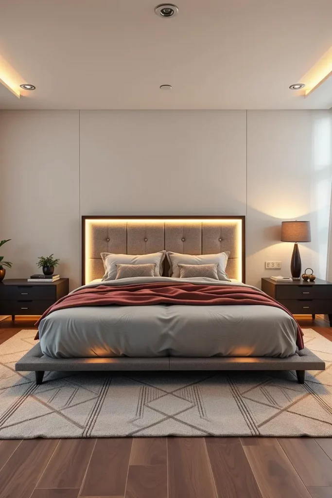I use supporting lighting elements like minimalistic nightstands, minimal wall decor, and soft bedding to reflect the light gently in order to complement in-built lighting. The lights used include LED strips, recessed lighting, and directional reading lights, thus creating a unified design that is modern. During the evenings, I use warm tones since it allows me to become more relaxed and calm the atmosphere.
