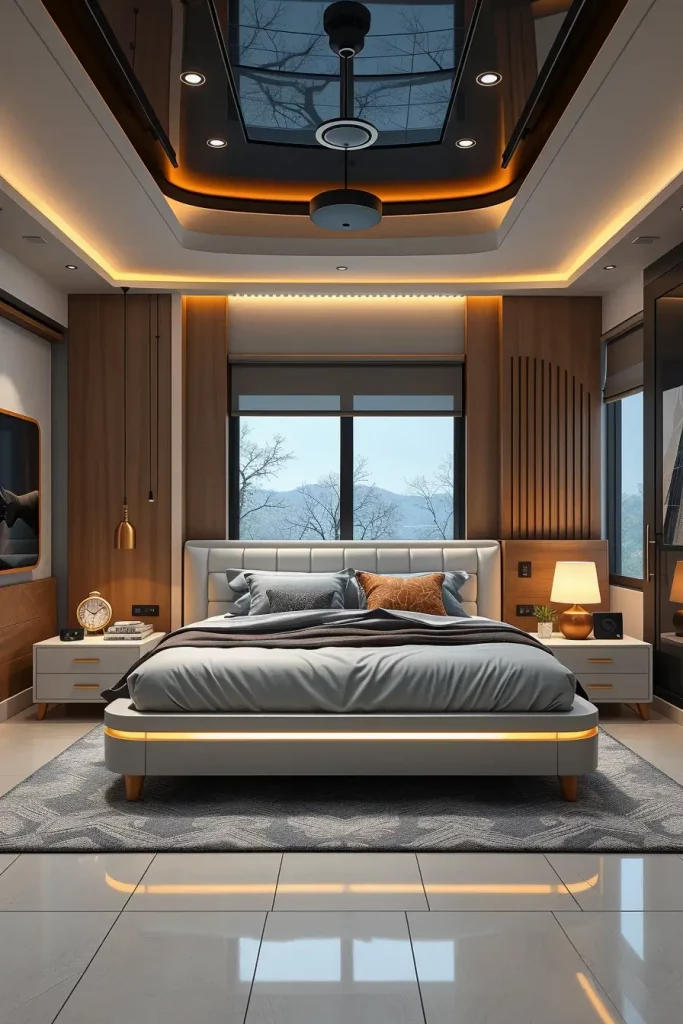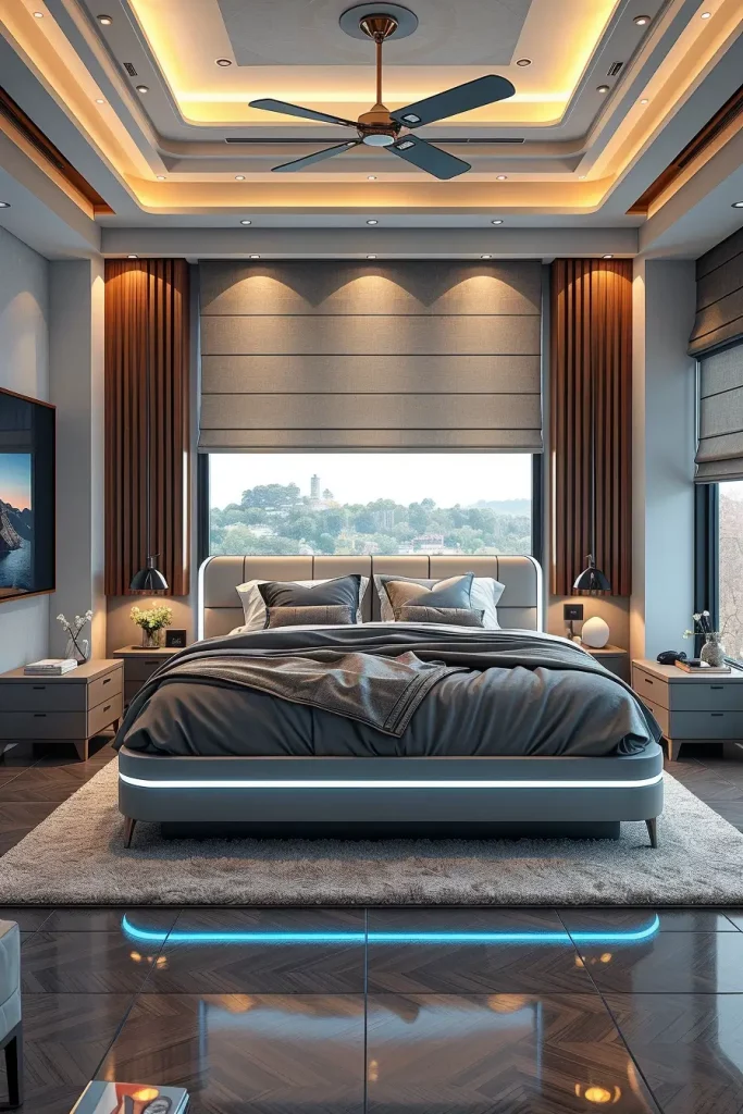 I tend to complement the smart bed with wireless charging nightstands, inbuilt LED lighting, and built-in speakers. Reading lights are mounted on the walls, cable management is concealed, and motorized window shades are used to preserve the appearance of sleekness and futuristic look. The whole room is supposed to be intuitive and uncluttered and this will add to the general high tech experience.