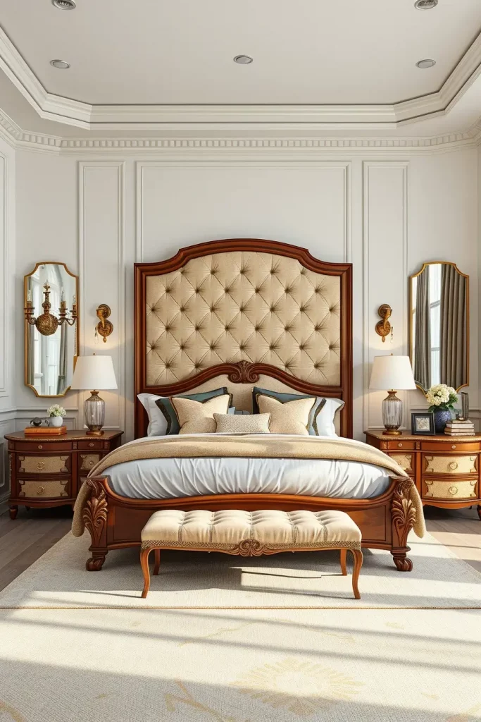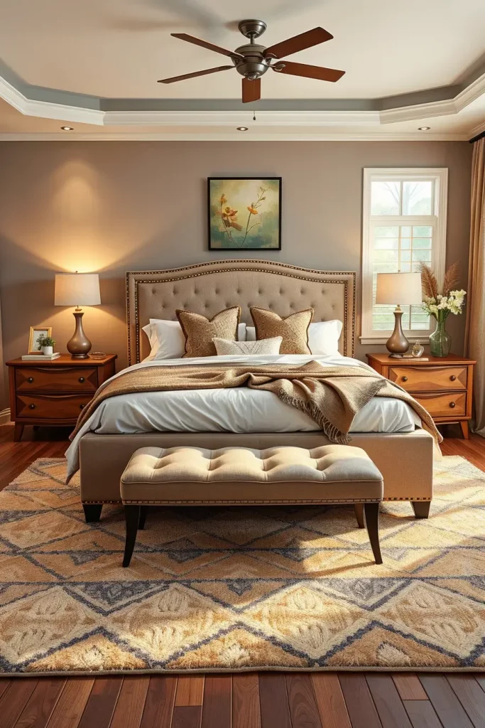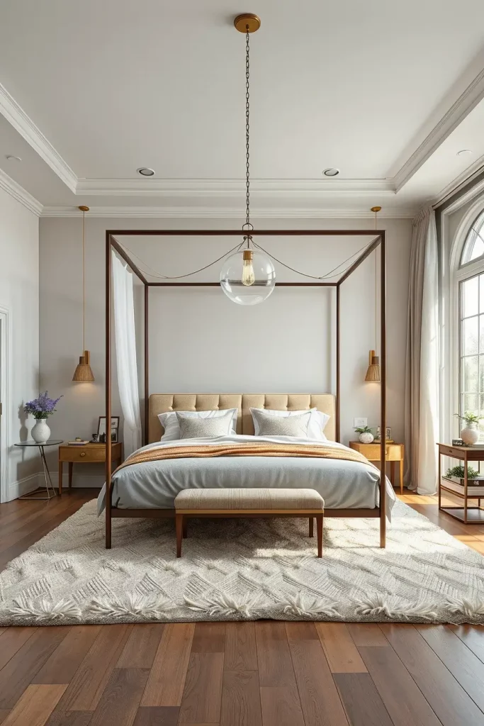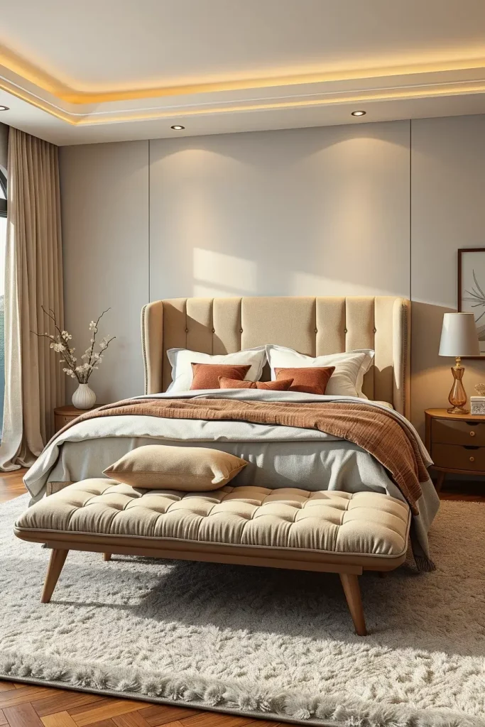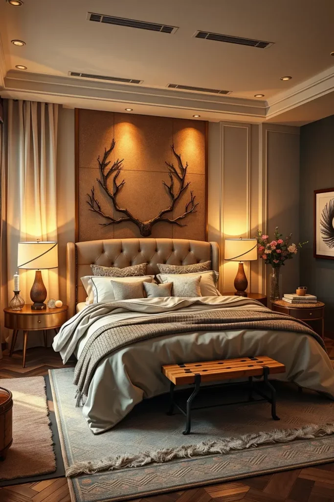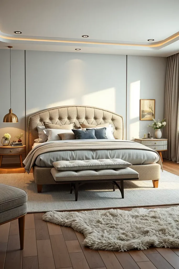 To finish the appearance, I choose furniture with minimal details: nightstands with classy hardware, plush area carpets, pleated curtains, and a bench or chaise at the end of the bed. Antique brass sconces, warm woods, and soft layered sleeping arrangements are present to lend a sense of coziness to the room without cluttering it. Both works serve a purpose, be it to create a sense of balance, to add warmth or to stress comfort, and it is the combination of them that creates a feeling of grounded sophistication.