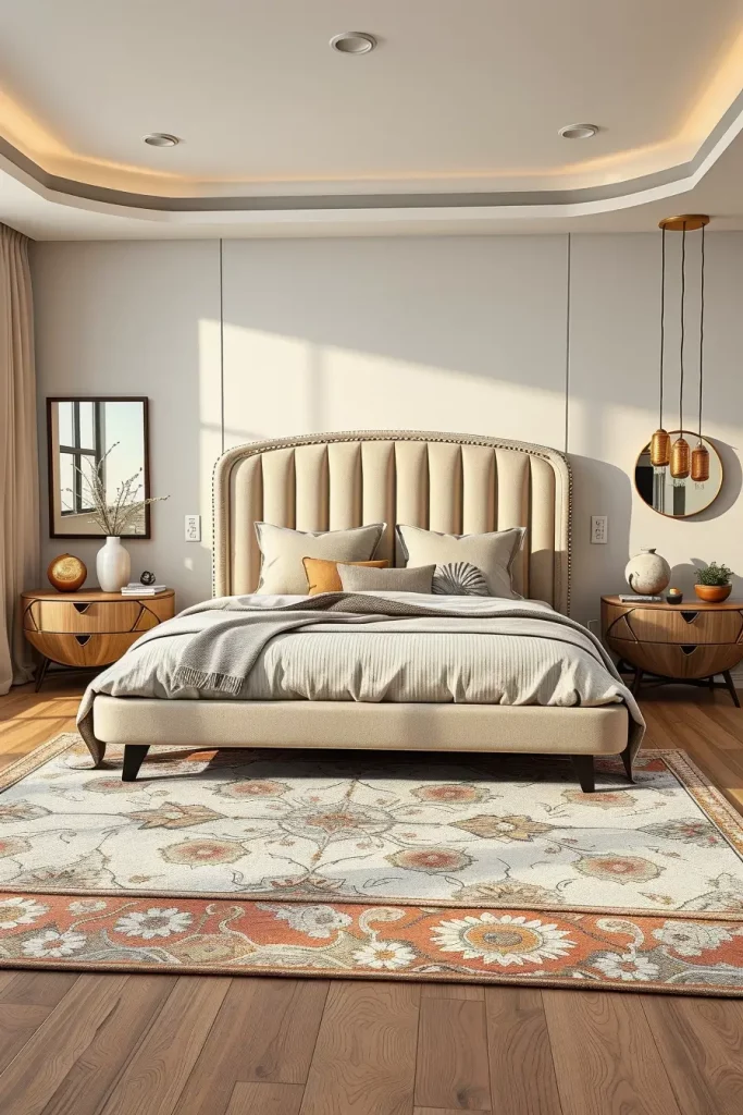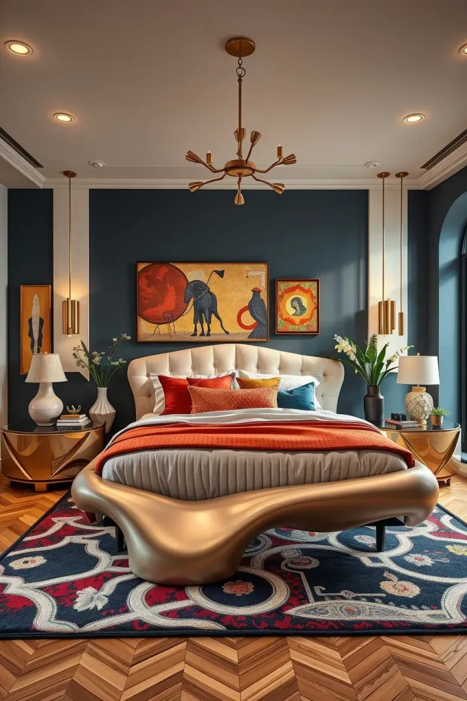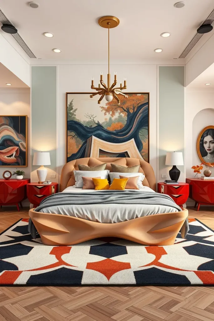 The artistic effect should be enhanced by furniture selection. I usually have statement nightstands, bright lighting systems, geometric carpets or colored bedding to match the design of the bed. Every item plays off to provide a gallery-inspired feel that is both thrilling and comfortable.