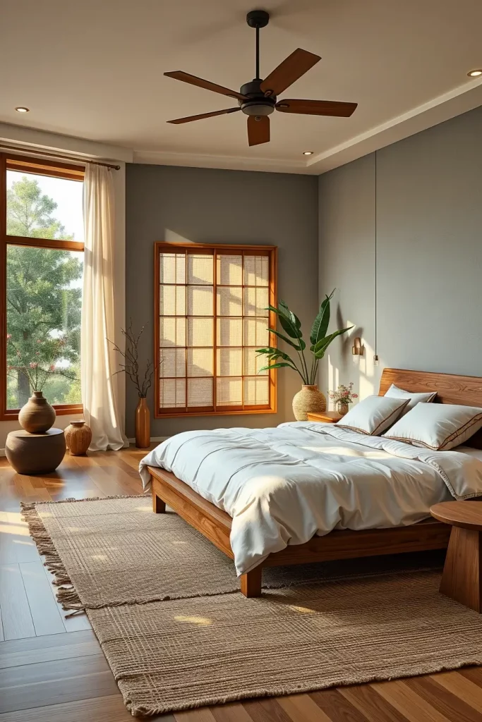 In the case of the surrounding furniture, I usually choose the low nightstands, minimal dressers, and soft materials such as the linen bedding or wool carpets. Platform beds are well matched with warm wood or unshiny finishes. The lighting of the floor with sconce or floor lamp will also provide some vertical interest without breaking the theme of the low profile. All is made to remain close to the ground so that there is harmony in sight.