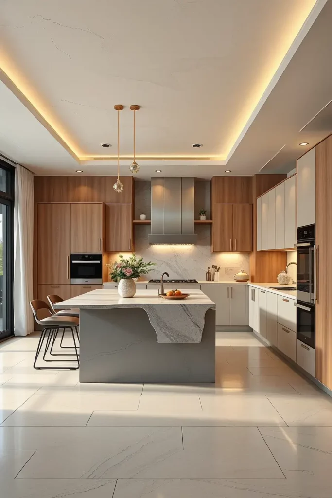 I have discovered that the combination of materials can add luxury. As an example, stone surrounding the island and wood in the areas have contrasting effects and functional areas. This is the strategy that is frequently suggested by designers at the Interior Design magazine, and I am in full agreement with the effect it produces.