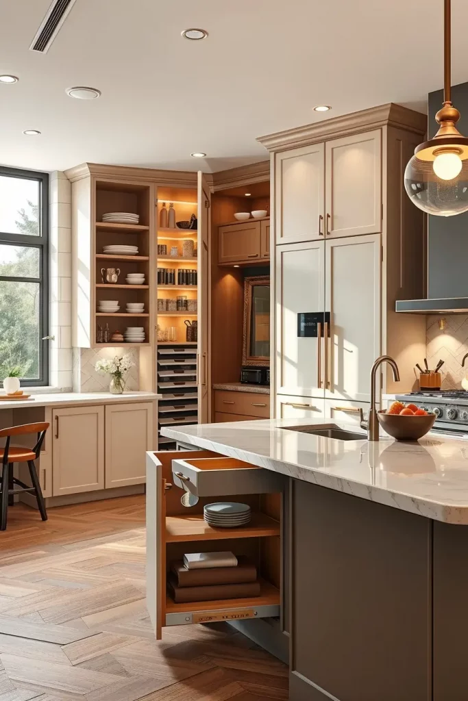 Luxury pantries are in the process of becoming boutique-like areas that reflect the luxury walk-in closets. I usually make them open to the display lights, doors made of glass and personalized shelving to bring out the beauty of normal kitchen utensils. These areas resemble the items that are in the gallery, and the culinary necessities are integrated into the settings. A well-designed pantry does not only classify the kitchen but also provides the kitchen with extra levels of organization and functionality.
