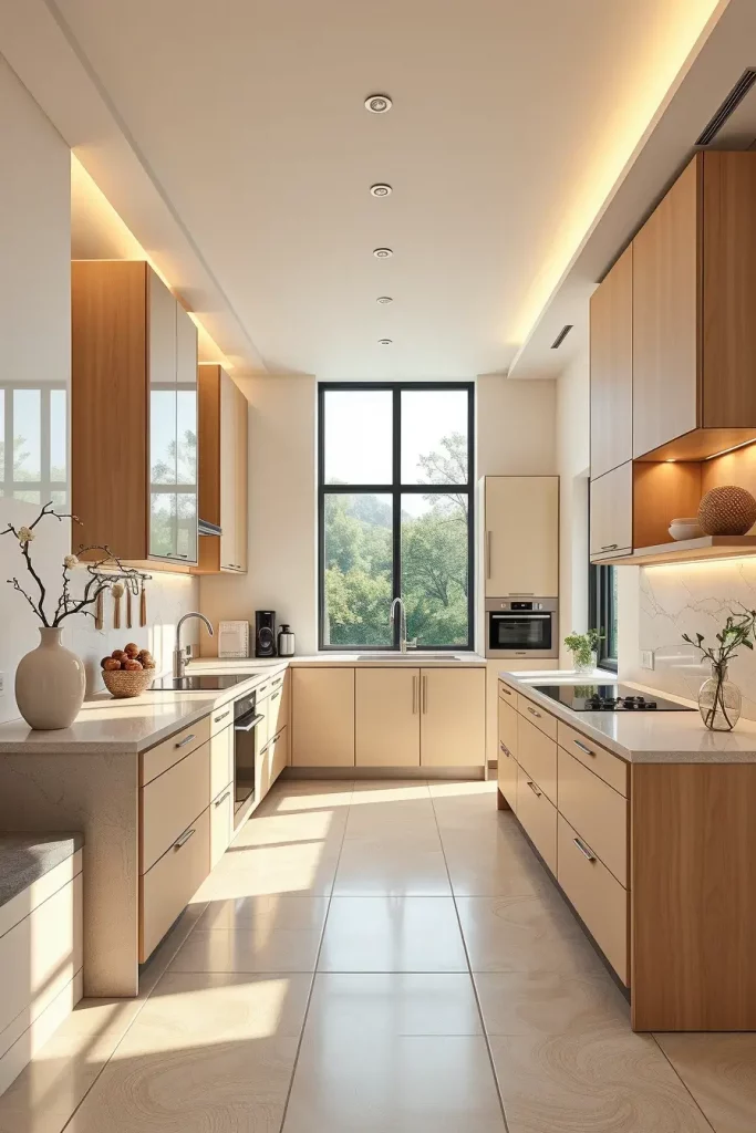 Luxury kitchen design in 2026 is dominated by warm neutral palettes as they bring about both comfort and beauty. In my approach to color choice, I consider the color effects as soft mocha color, mushroom beige color, taupe color, creamy ivory color, and caramel color. These colors contribute towards making the kitchen look relaxing and welcoming particularly in open-plan houses where color complement is necessary.