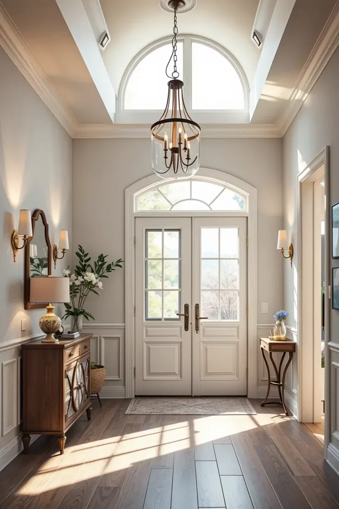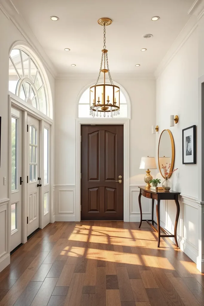 Ambiance and visibility meet in a Martha Stewart-inspired entryway, which must be lit. The space is often illuminated with natural light, and the broad windows or sidelights on the door, however, carefully chosen artificial lighting makes the space warm even during the evening.