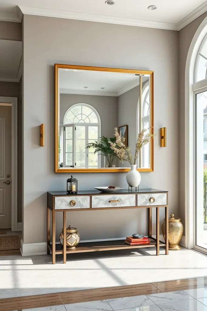 Mirrors are among the cleverest investments in an entryway, in my professional opinion. HGTV used to recommend that mirrors reflect more light in a room, which is particularly useful in rooms that are not naturally bright.