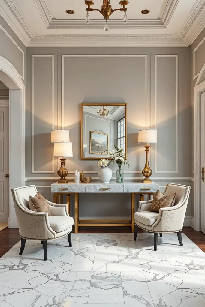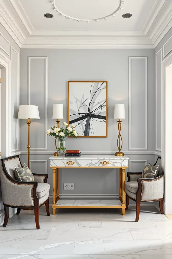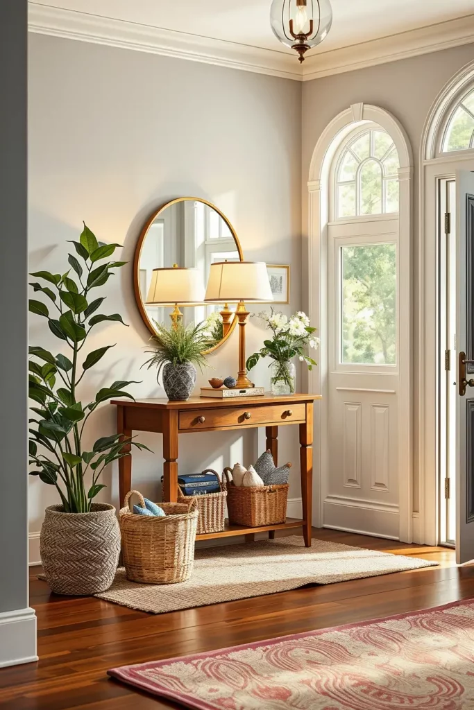 I usually incorporate a simple console table, a classy lamp and natural features like fresh greenery in this design. These facts contribute to the excitement of the space without making it too intense. The right rug on the floor can anchor the room and ensure the entrance is comfortable without losing the elegant look.