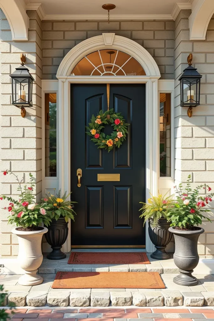 The only thing that can make this idea even better is to use seasonal wreaths or small flower arrangements directly in front of the door. These provide a visual welcome as well as emitting fragrance in a subtle fashion that does not overwhelm the senses but keeps the entrance fresh. It is an approved Martha detail that is easily missed.